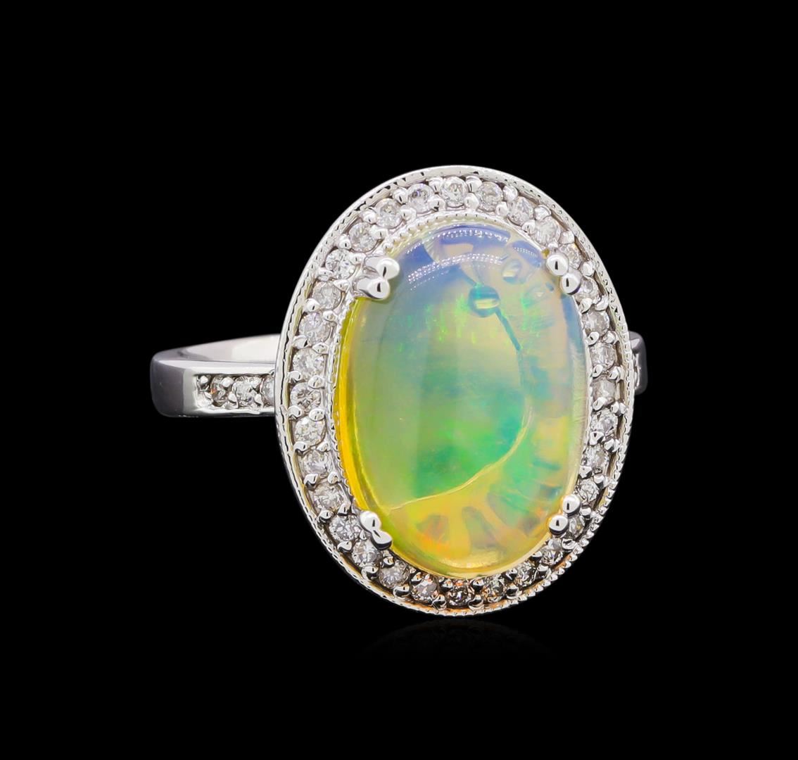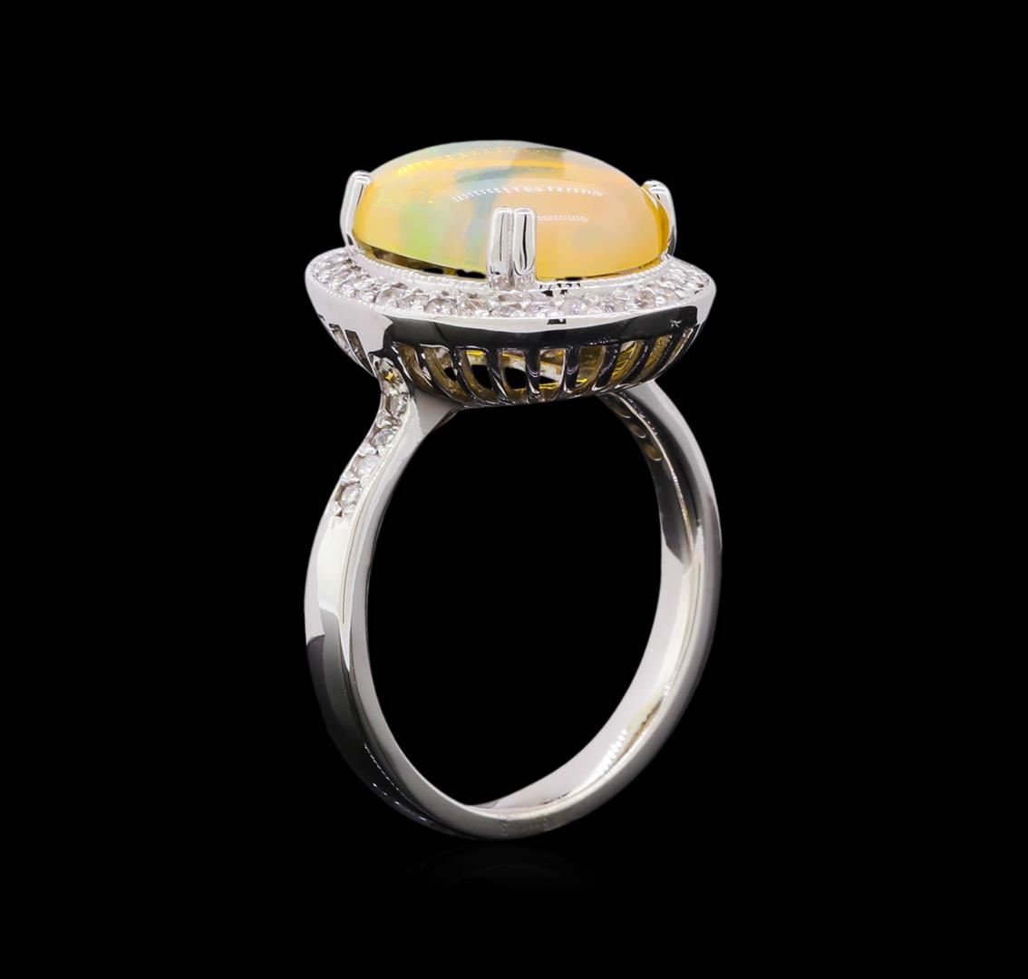 One ring featuring: 14KT white gold weighing 4.84 grams containing one opal weighing 3.50ct and diamonds weighing 0.35ctw.