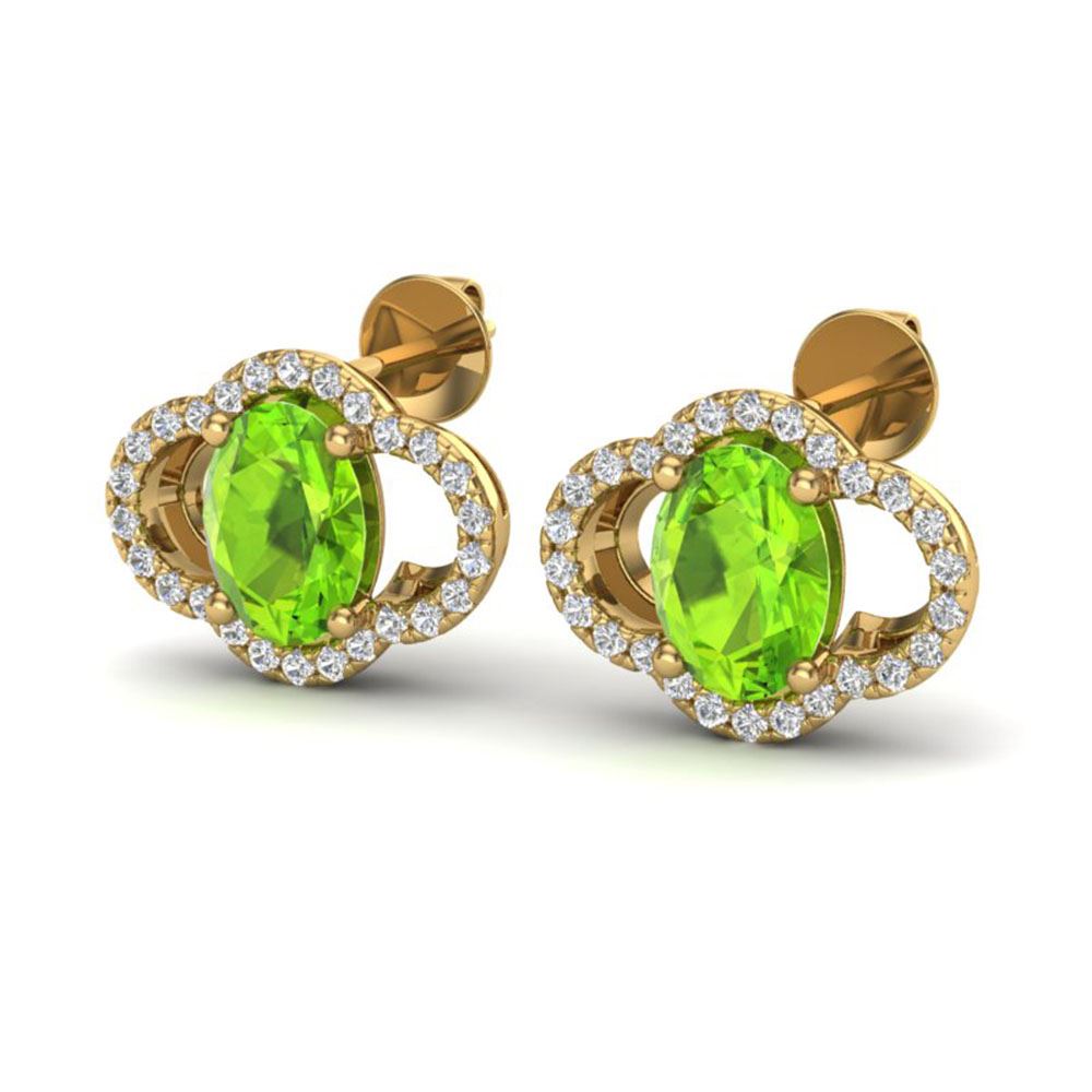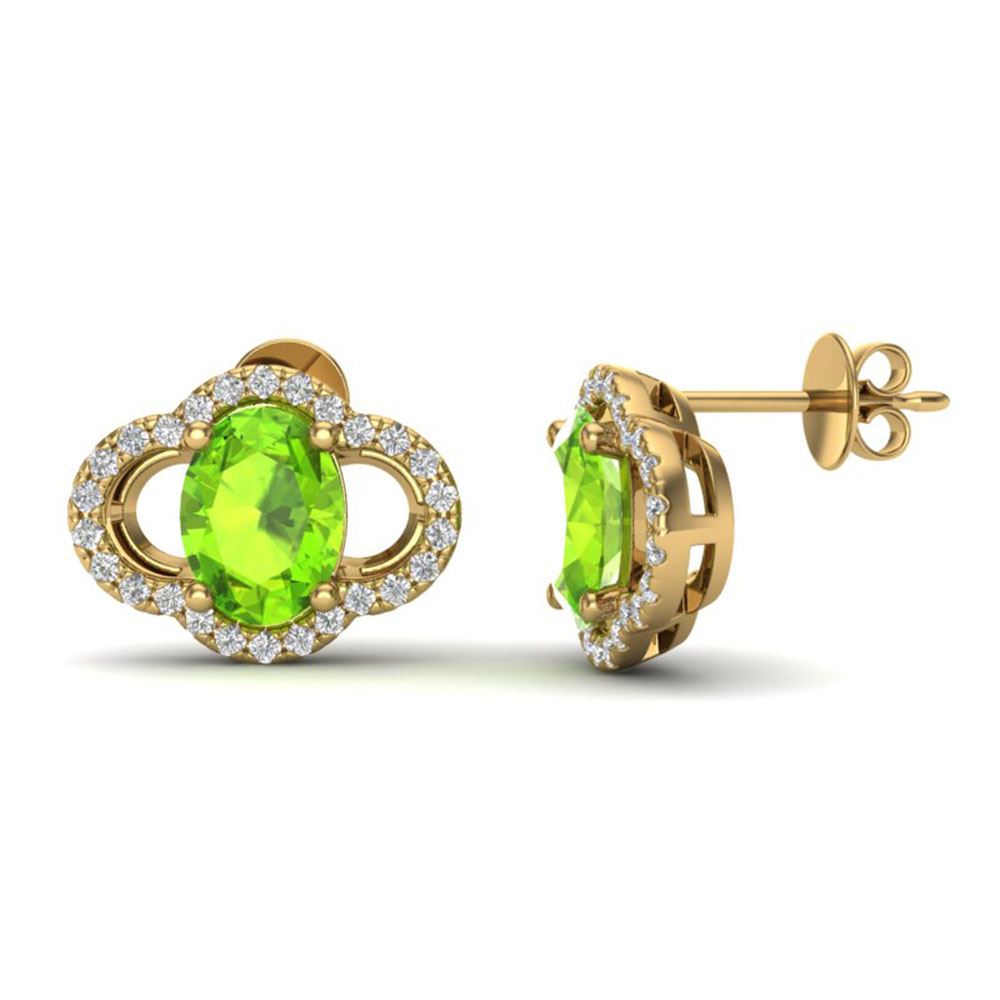 REF-45N4F - SKU: 20299 ---- 3.50 ctw Peridot & Micro Pave VS/SI Diamond Earrings 10k Yellow Gold