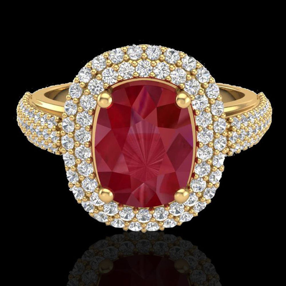 REF-143W6H - SKU: 20722 ---- 3.50 ctw Ruby & Micro Pave VS/SI Diamond Certified Ring 18k Yellow Gold