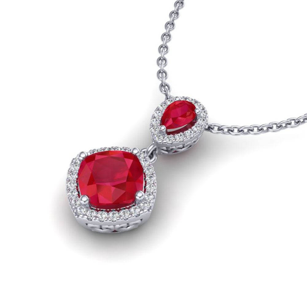 REF-55A2N - SKU: 20546 ---- 3.50 ctw Ruby & Micro Pave VS/SI Diamond Necklace 10k White Gold