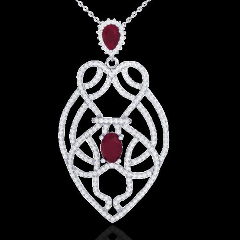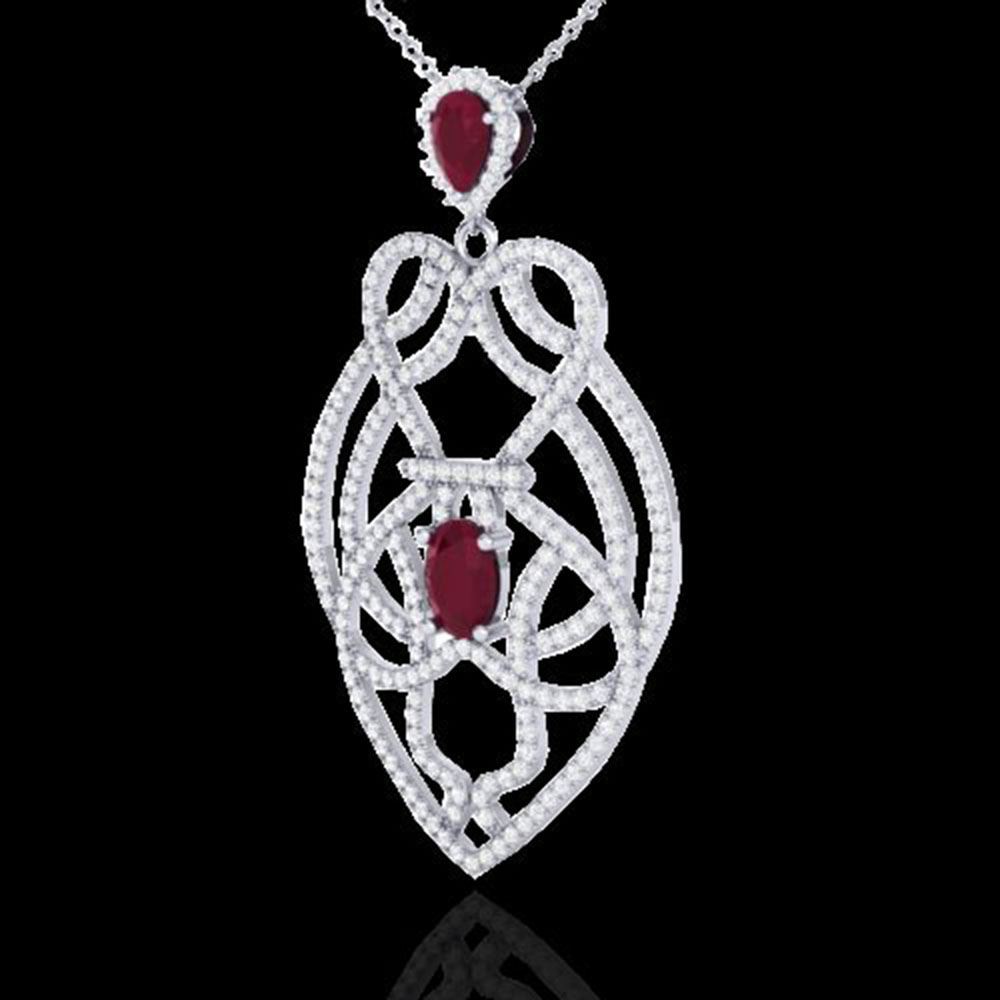 REF-179H6R - SKU: 21250 ---- 3.50 ctw Ruby & Micro VS/SI Diamond Heart Necklace 14k White Gold