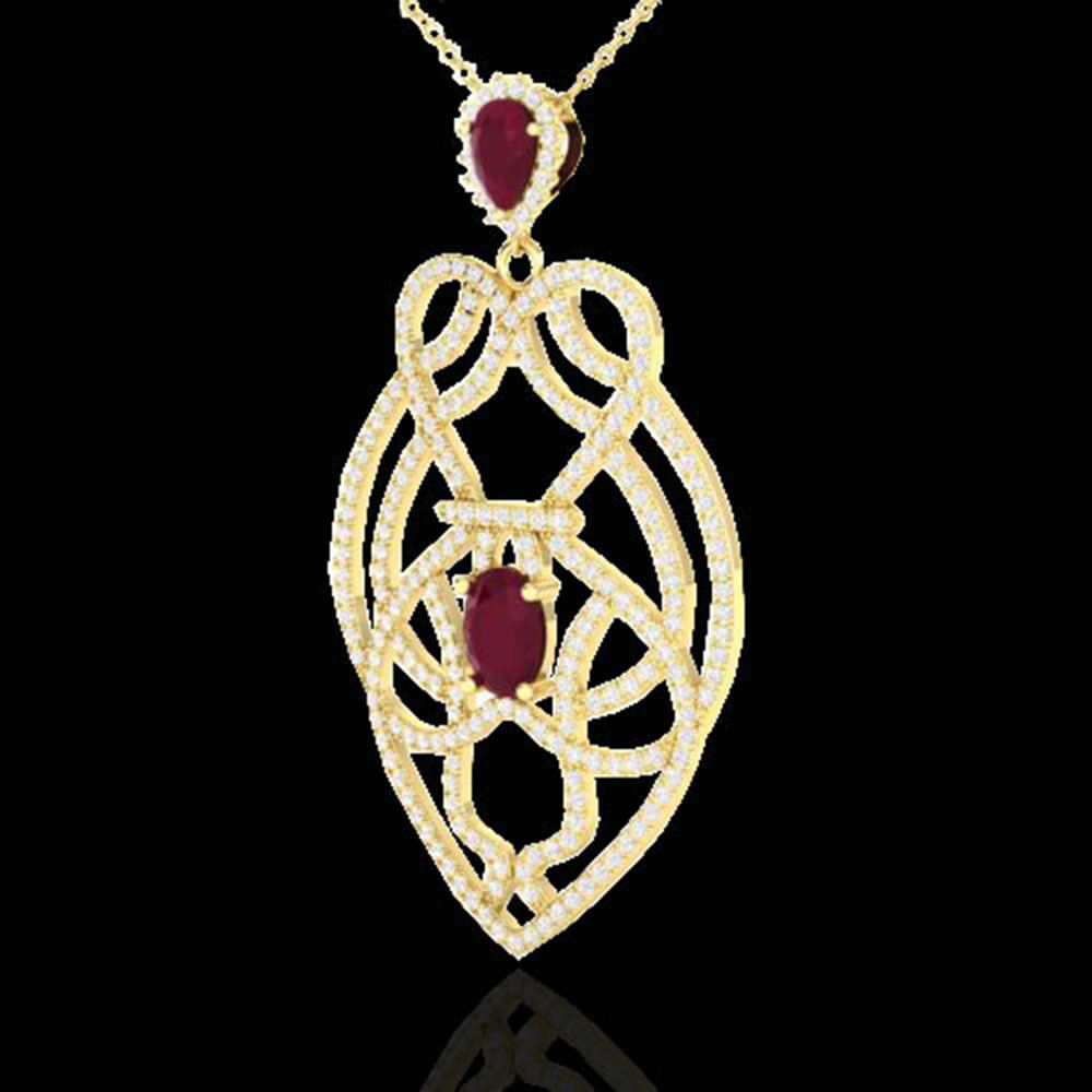 REF-179K6Y - SKU: 21251 ---- 3.50 ctw Ruby & Micro VS/SI Diamond Heart Necklace 14k Yellow Gold