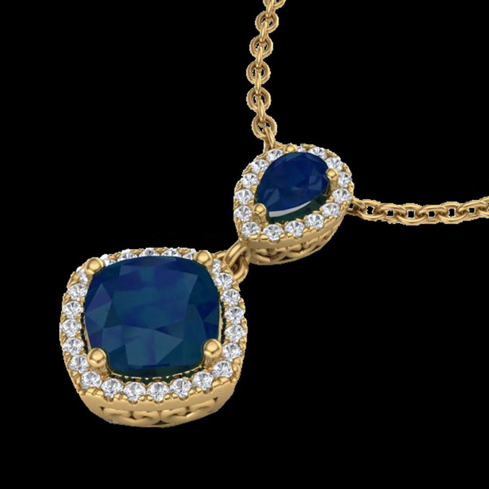 REF-45X2A - SKU: 20549 ---- 3.50 ctw Sapphire & Micro VS/SI Diamond Necklace Designer 10k Yellow Gold