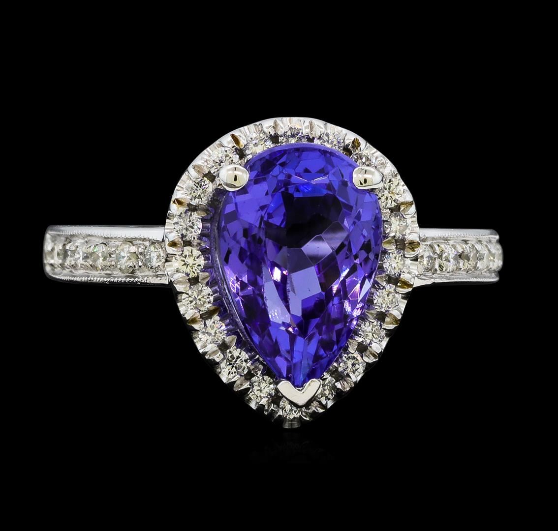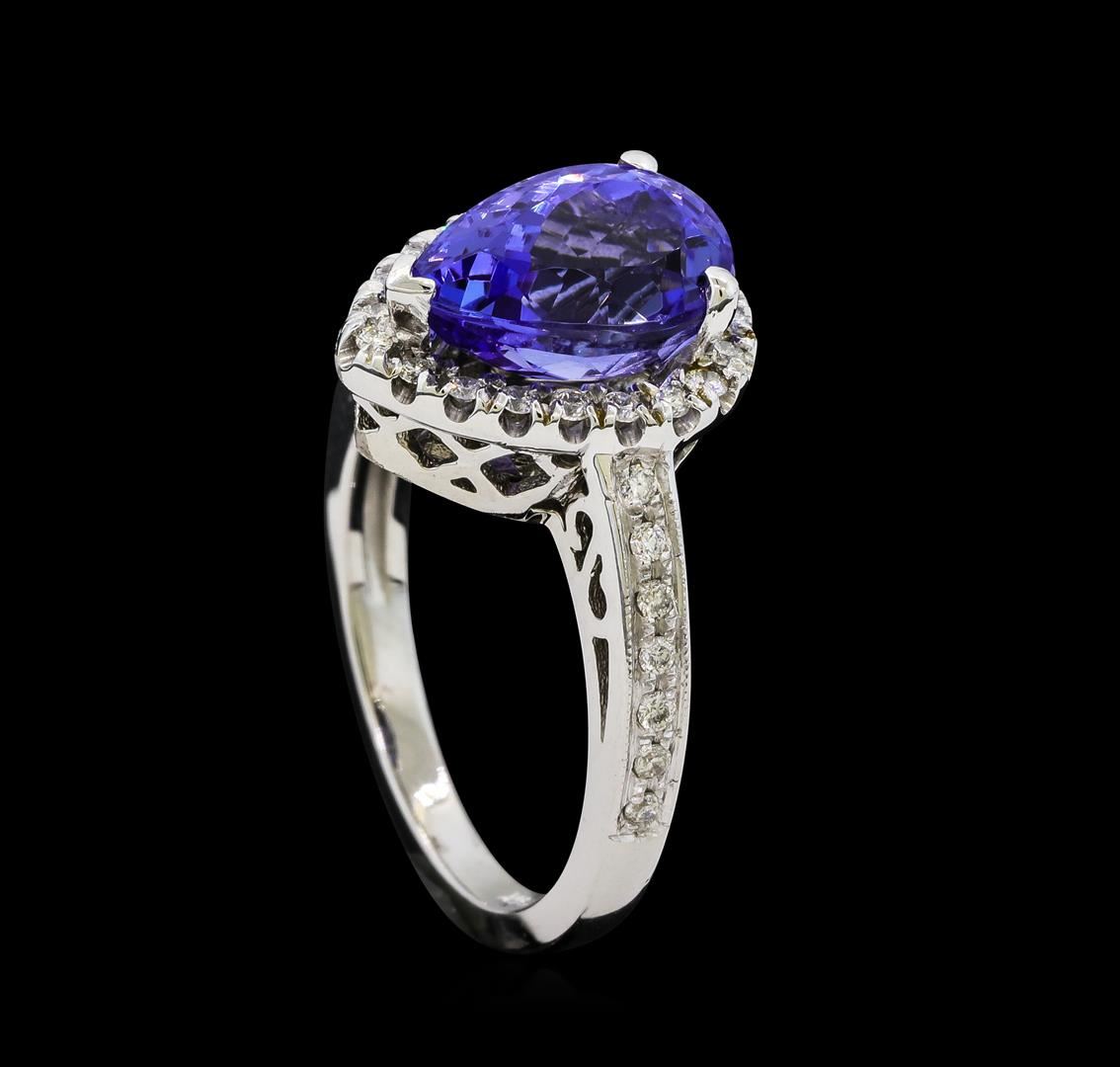 One Tanzanite and Diamond Ring including: 14KT White Gold weighing a total of 5.08 grams, Tanzanite weighing a total of 3.50ct, and 34 Diamonds weighing a total of 0.33ctw.