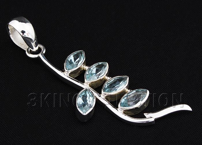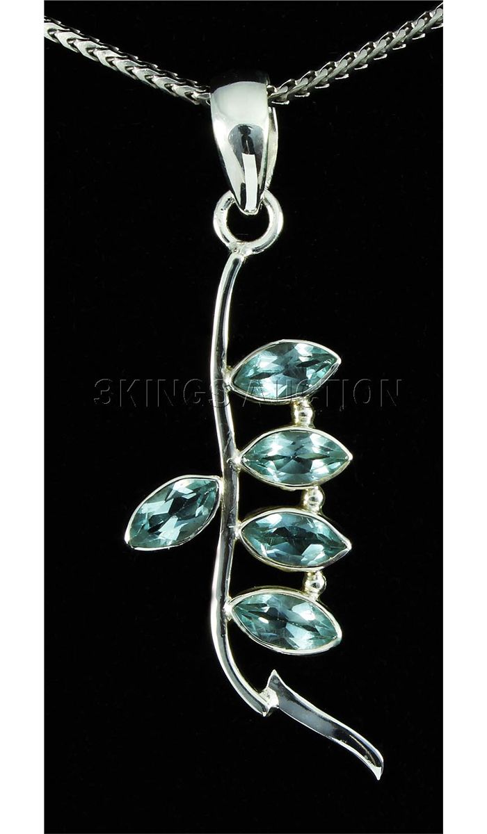 3.50CT Blue Topaz Leafy Design 0.925 Pendant 5.30g **|**|** 2.20in. Long Sterling Silver Leaf Design Pendant with a Blue Topaz Faceted Gem Measuring 8x4mm Marquise ; MSRP: $500
