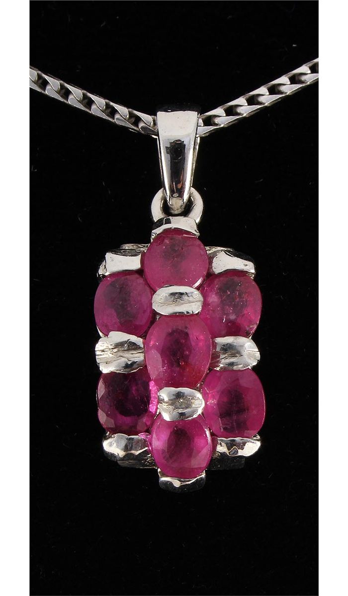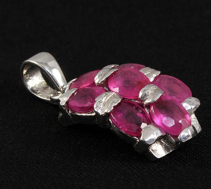 3.50ctw Pink Ruby Sterling Silver Cluster Pendant 2.35g **|**|** Natural Ruby Corrundum Gesmtone 7pcs Oval 5x4mm in Silver Pendant; Size: 1.05x0.43 inches ; MSRP: $100