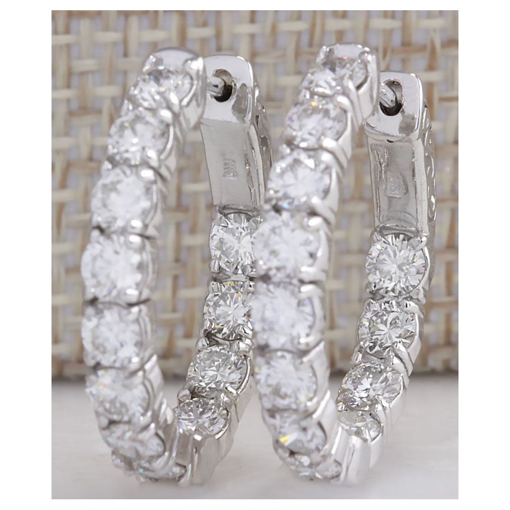 3.51CTW Natural Diamond Hoop Earrings 18K Solid White Gold