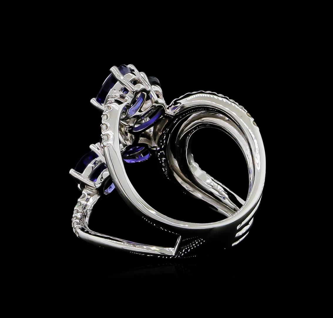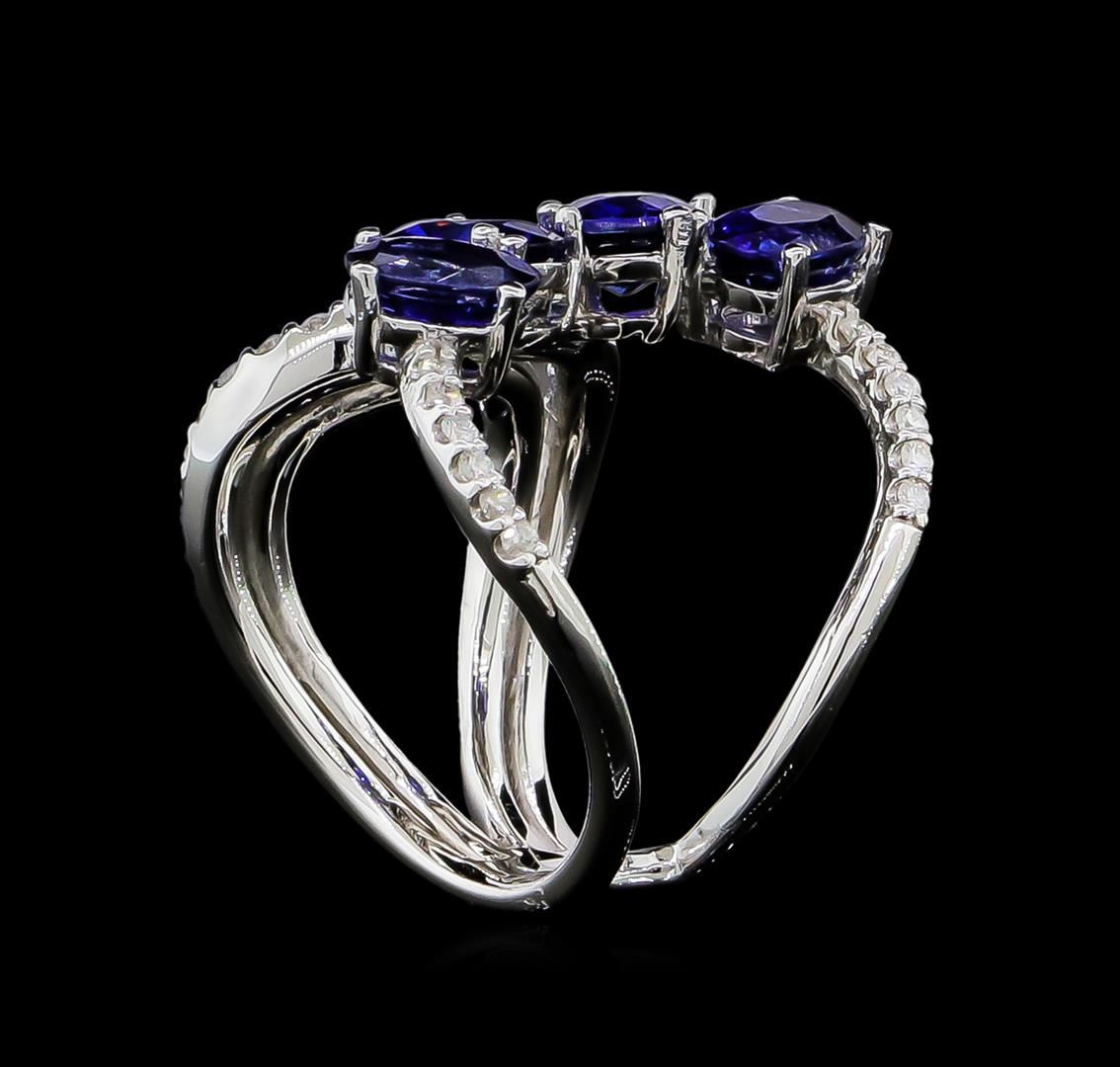 One ring featuring: 14KT white gold weighing 6.73 grams containing 4 blue sapphires with a total weight of 3.51ct and side diamonds with a total weight of 0.46ct.