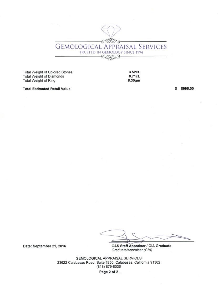 Not all Jewelry, watches or loose stones are appraised and the appraisals are provided for bidders only in certain instances at the discretion of SAA. Our appraisals are conducted by independent third-party appraisal firms. Such firms may be certified GIA Gemologists or have education in the industry or alternative certifications. Appraisals should be used for verification of gemstone and/or metal weight, size, and grade only, not actual value for resale or insurance purposes. Appraisal value should be not considered for actual value, as price varies greatly from retail locations and other merchants in different geographic locations. All Items auctioned by SAA should not be purchased with a view or expectation toward resale for appraisal price given, or to make a profit. The ultimate value for which an item can be resold may vary drastically from the appraisals listed by SAA.