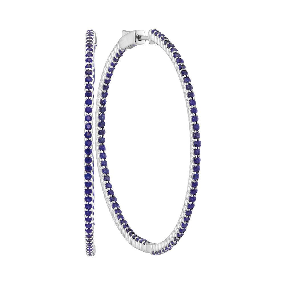 REF-142Y4X- SKU: GD107273 ---- 3.53 CTW Blue Sapphire Large Slender In/Out Hoop Earrings 14KT White Gold