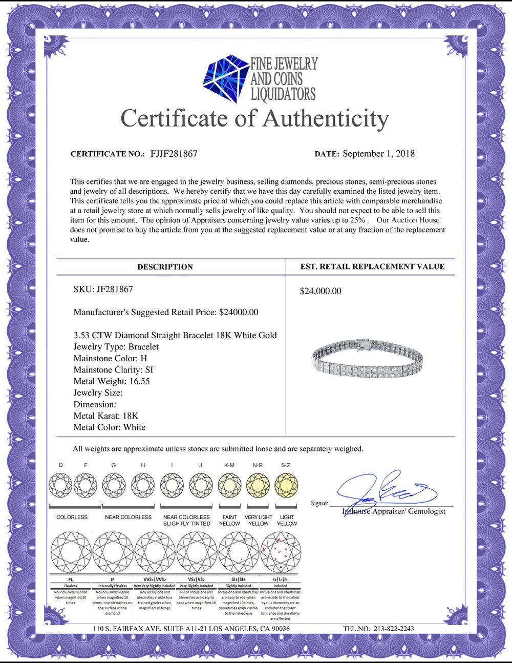 REF-318R5K - JF281867 ---- 3.53 CTW White Round Diamond Bracelet 18K White Gold