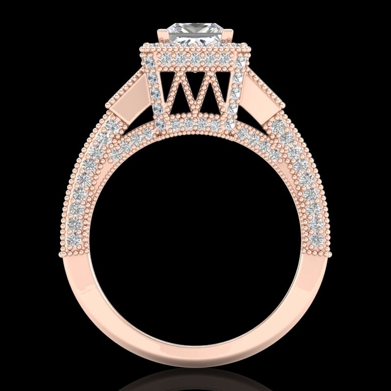 37176 - REF-618Y2X ---- 3.53 CTW Princess VS/SI Diamond Micro Pave 3 Stone Ring 18K Rose Gold ---- Luxury Designer Brand 3 stone ring Appraised at $30,600 Certificate Number US37176 18k Rose gold, 3 stone ring Size is 7, 3 stone ring measuring approx. Uniform, weighing in total approx. 14 grams. Made in the USA and is stamped 18k, Main stone 1.03 carat total weight containing 1 pieces of H-J color with VS/SI quality Princess shape cut Diamond , Stone #2 0.55 carat total weight containing 2 pieces of H-I color with VS/SI quality Princess shape cut Diamond , Stone #3 1.95 carat total weight containing 156 pieces of G-H color with VS/SI quality Round shape cut Diamond