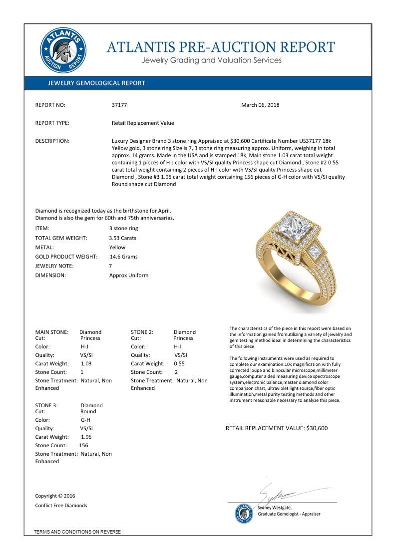 *Stone Treatment: Natural, Non EnhancedStone 3: Diamond