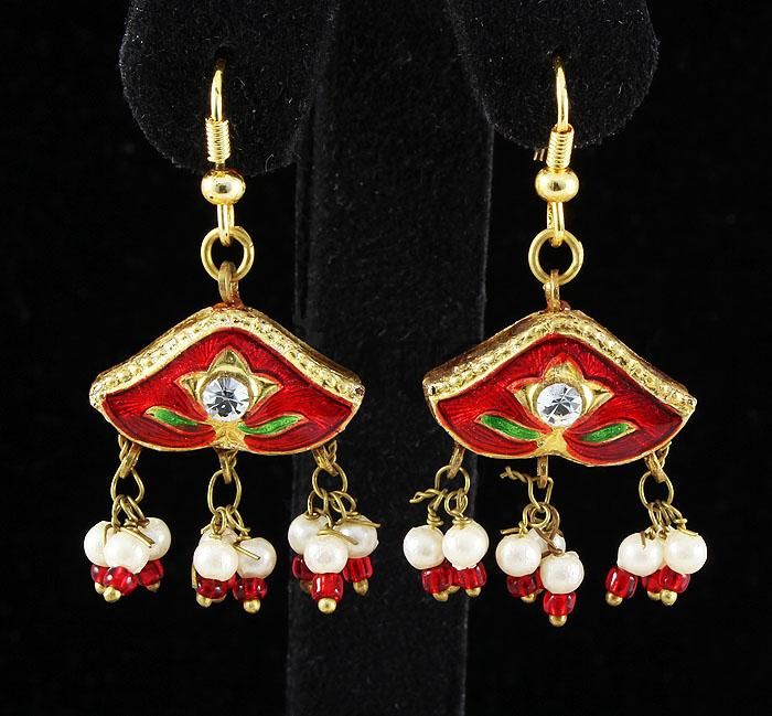 3.53GRAM INDIAN HANDMADE LAKH FASHION EARRING **|**|** Weight(g): 3.53 ; Metal: SILVER PLATEDLAKH ; Length: 1.5 INCHES ; MSRP: $100