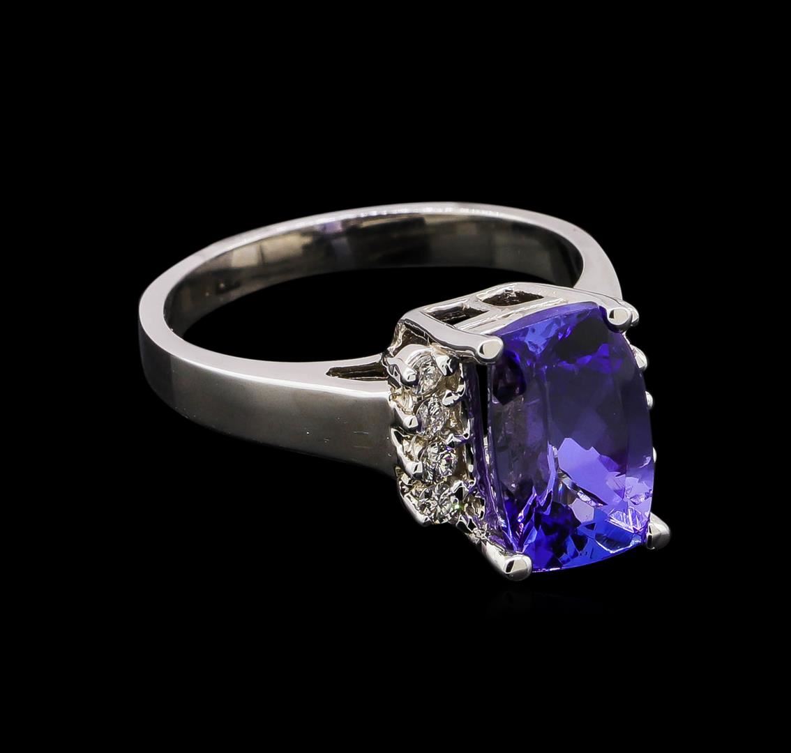 One ring : 14KT white gold weighing 4.92gm containing one tanzanite stone with a total weight of 3.54ct. and diamonds weighing 0.18ctw.