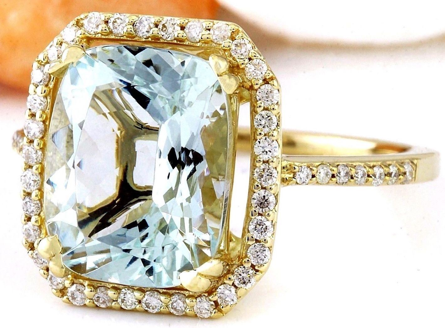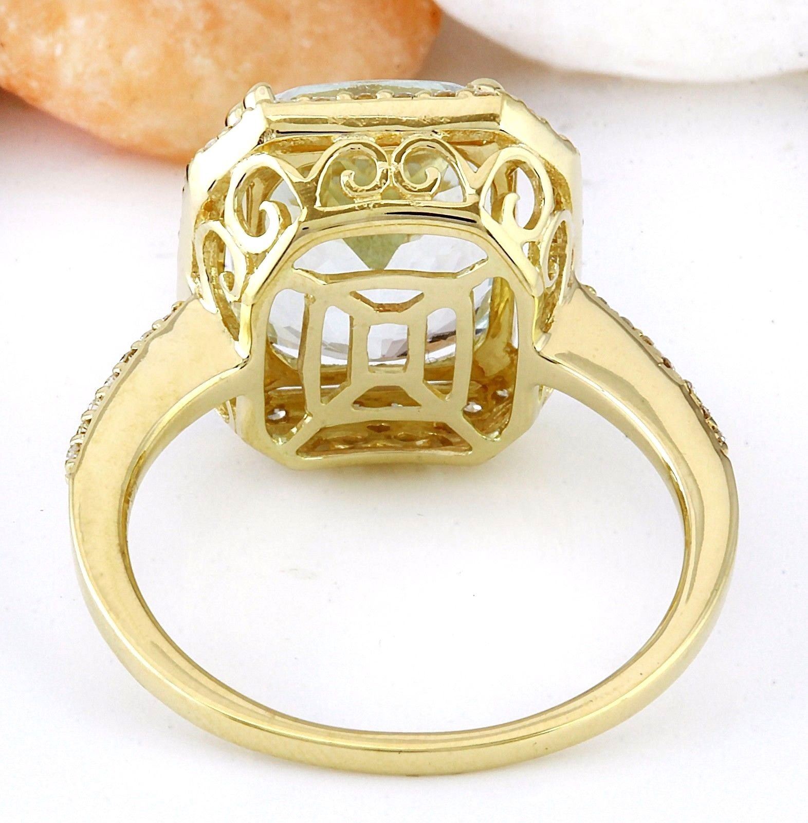 3.55 Carat Natural Aquamarine 14K Solid Yellow Gold Diamond Ring