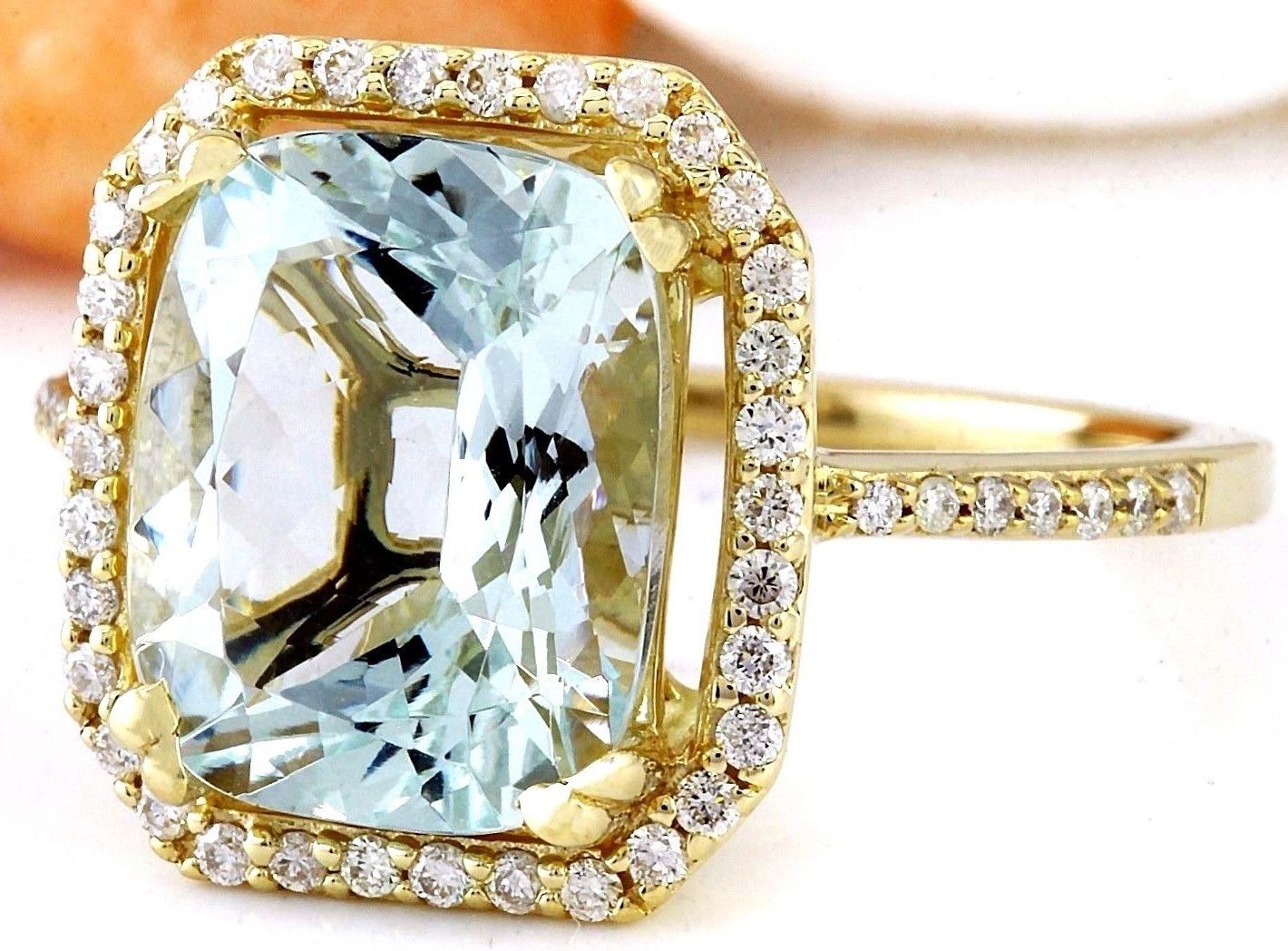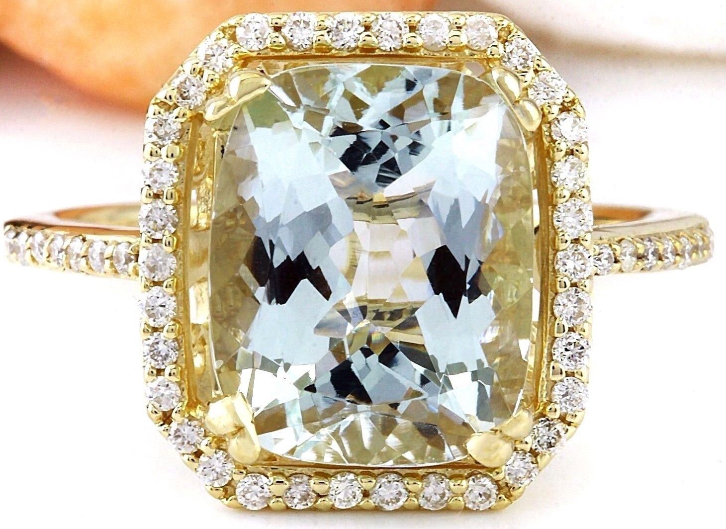 3.55 Carat Natural Aquamarine 18K Solid Yellow Gold Diamond Ring