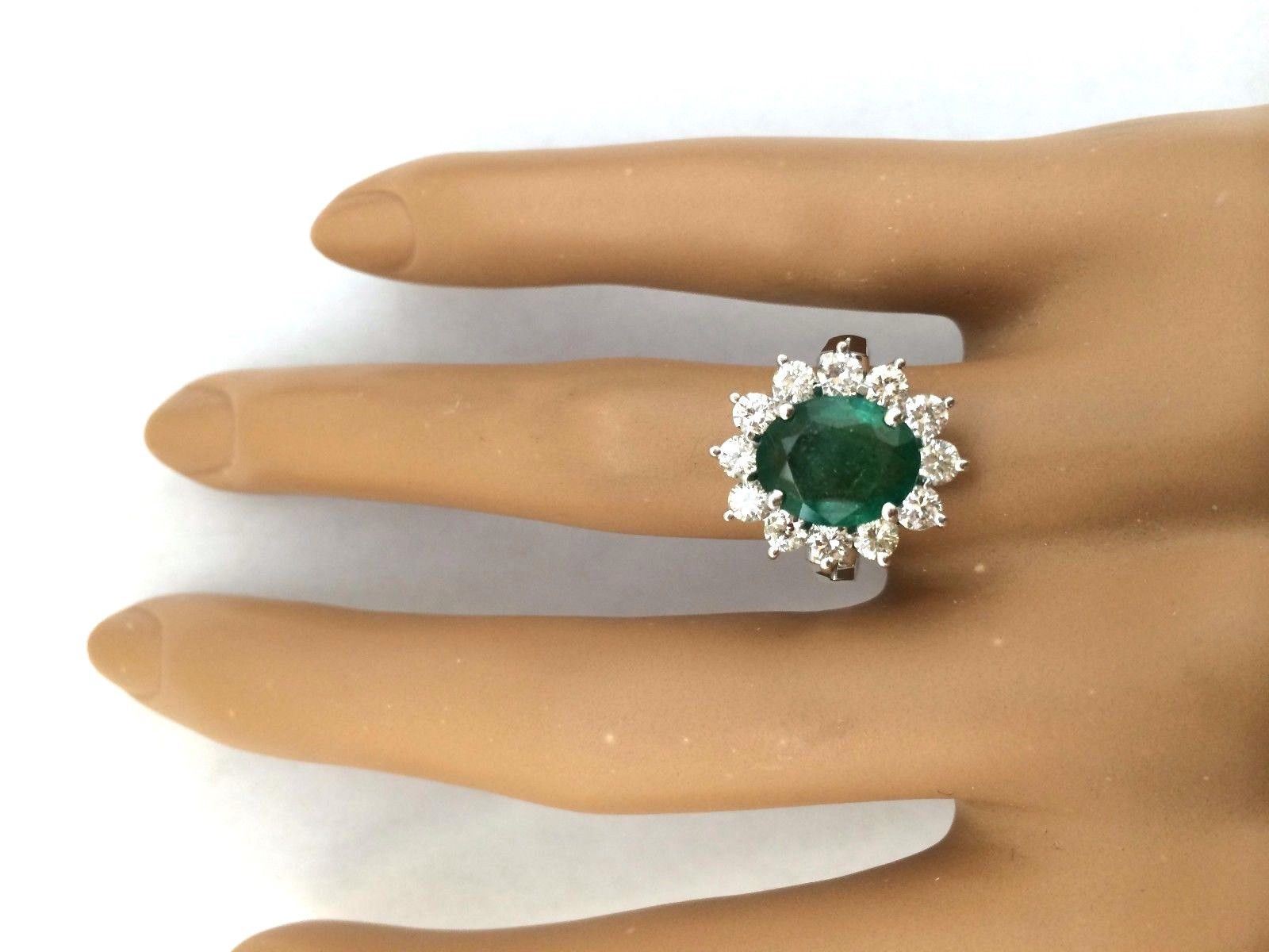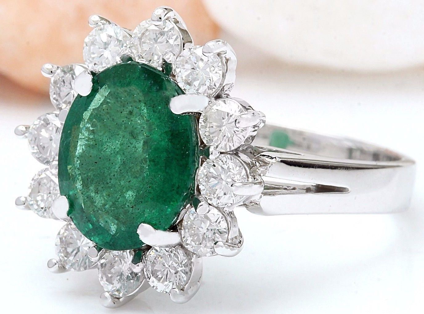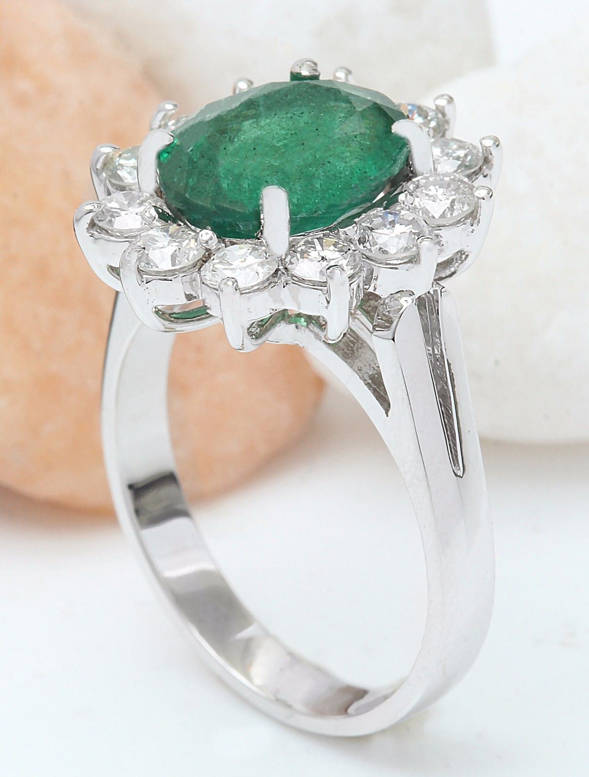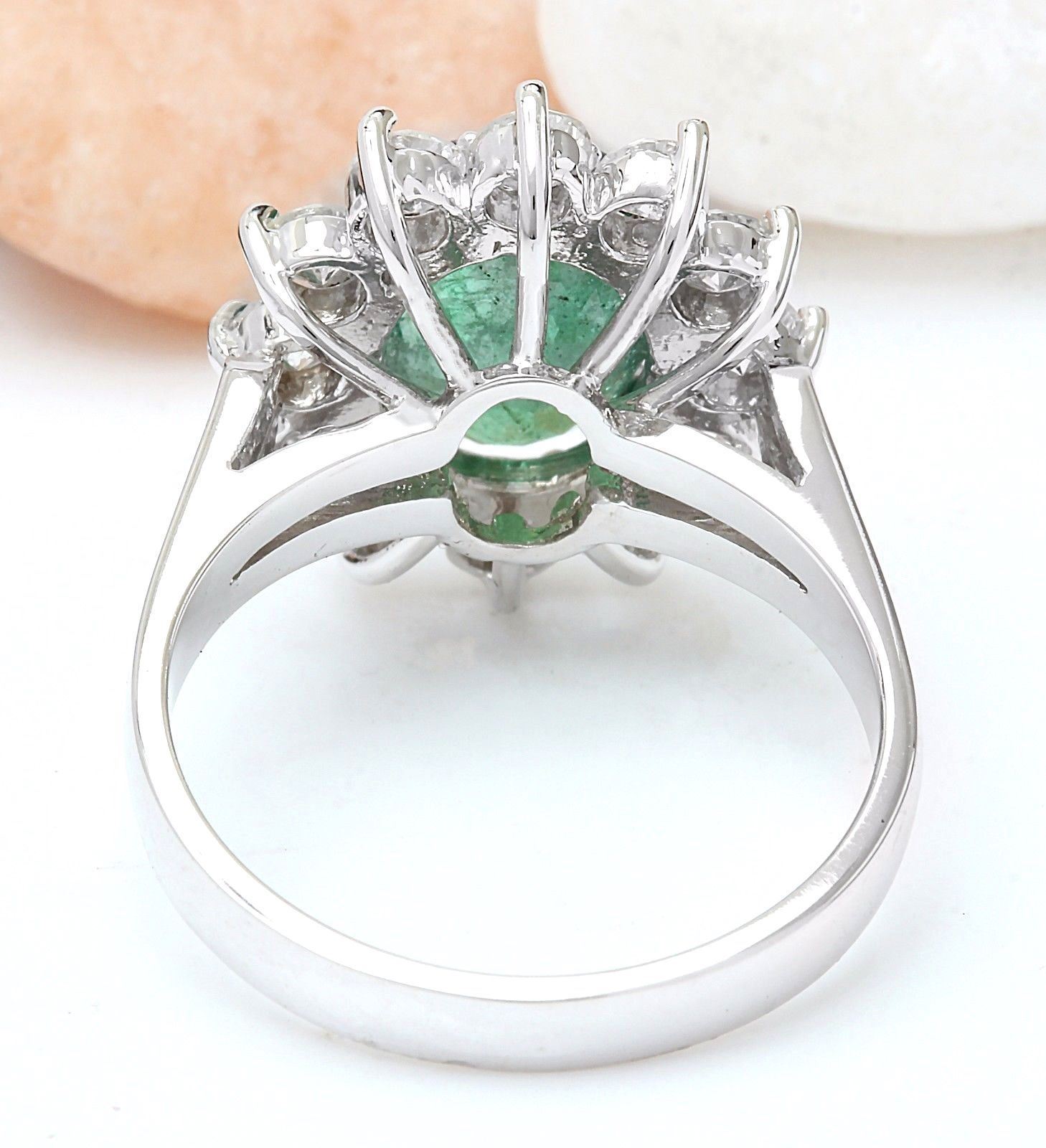 3.55 Carat Natural Emerald 14K Solid White Gold Diamond Ring