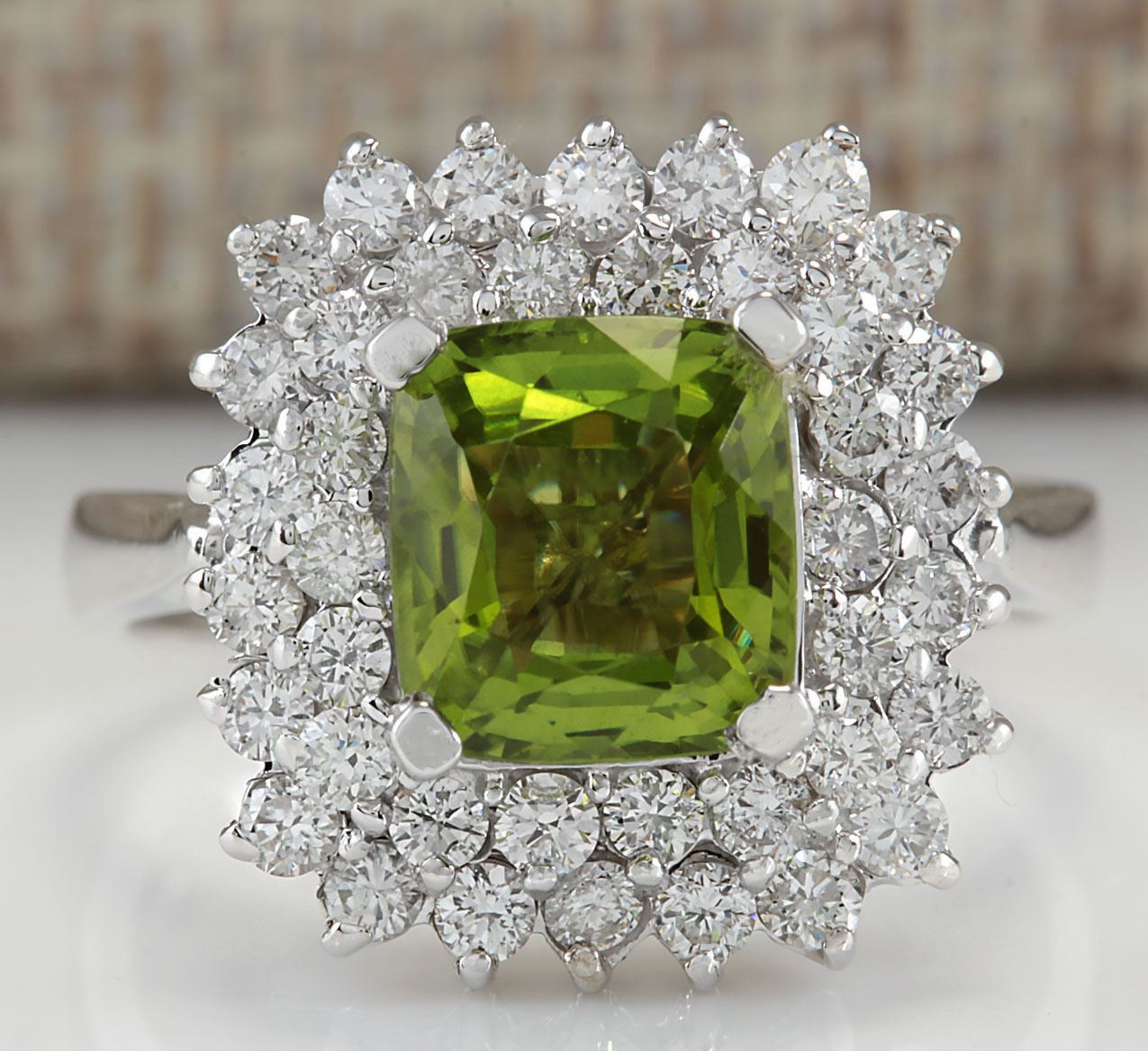3.55 CTW Natural Peridot And Diamond Ring 18K Solid White Gold