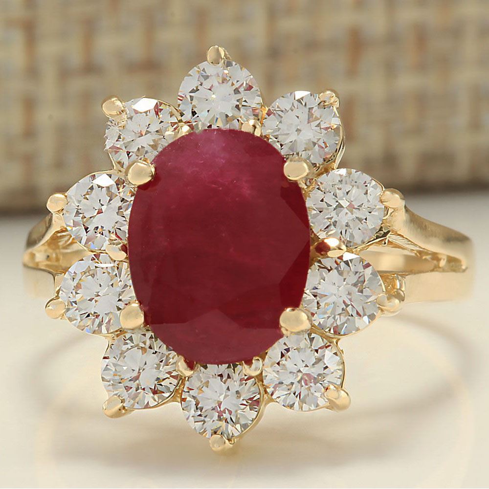 3.55 CTW Natural Ruby And Diamond Ring In 14k Yellow Gold