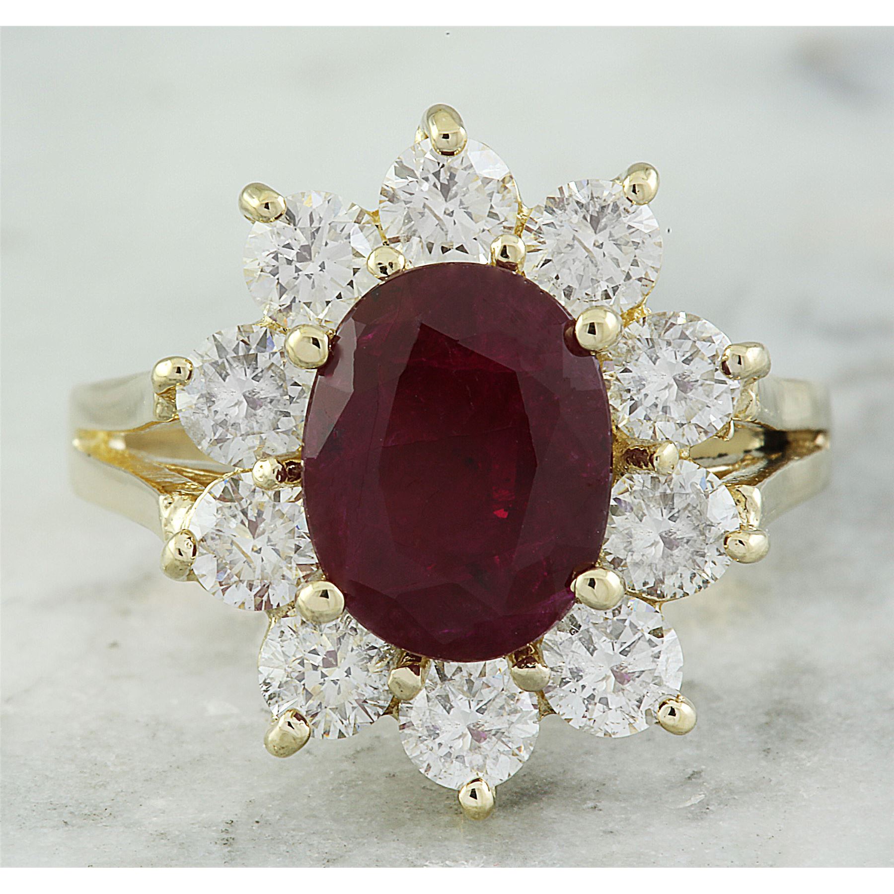 3.55 CTW Ruby 14K Yellow Gold Diamond Ring
