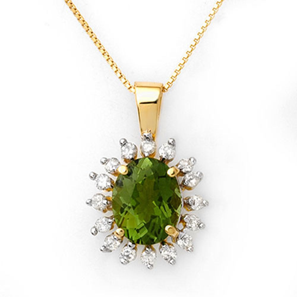 REF-73Y6X - SKU: 10795 ---- 3.55 ctw Green Tourmaline & Diamond Necklace 10k Yellow Gold