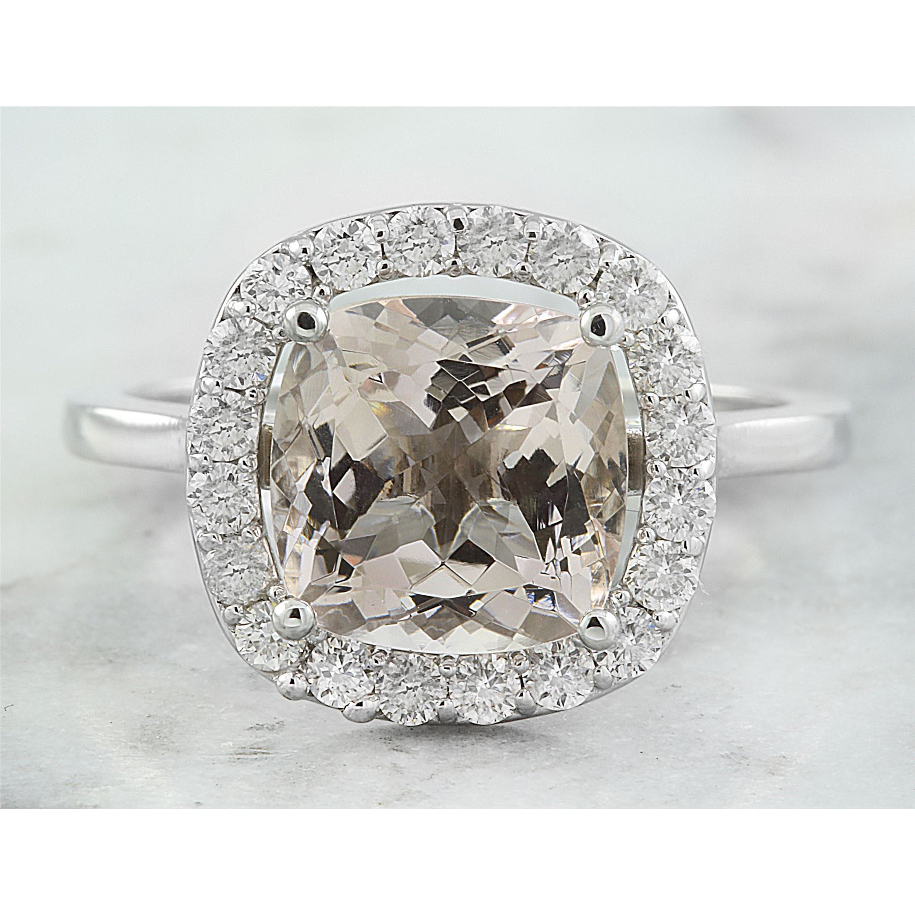 3.56 CTW Morganite 14K White Gold Diamond Ring