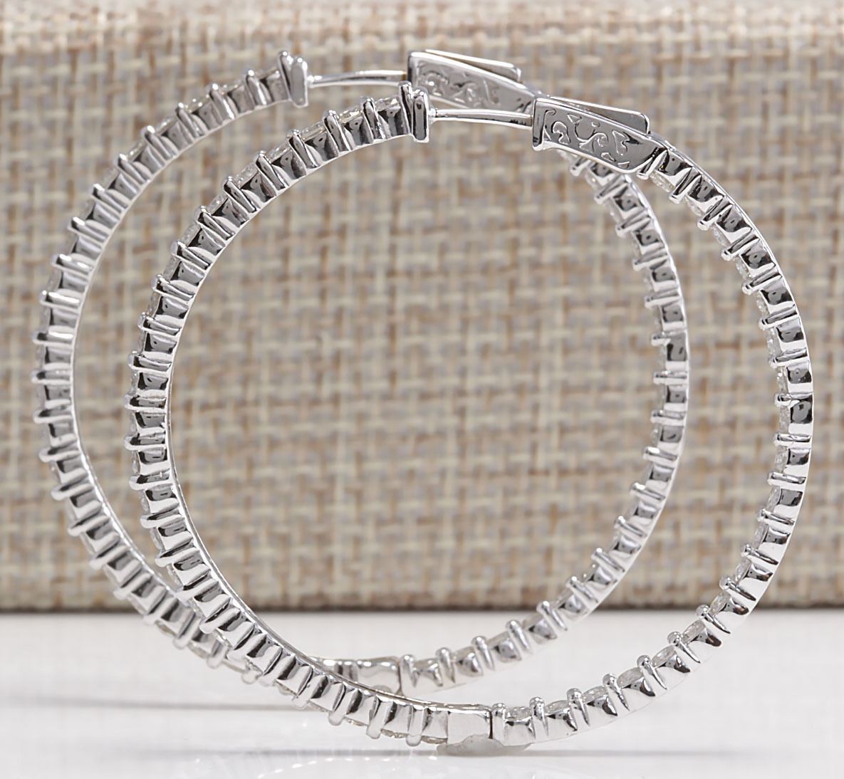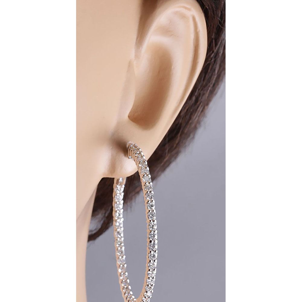 3.56 CTW Natural Diamond Hoop Earrings 14K Solid White Gold