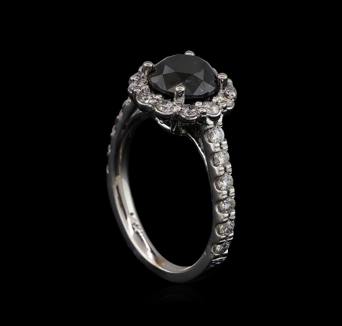 One ring featuring: 14KT white gold weighing 4.65 grams containing one black diamond with a total weight of 2.80ct and side diamonds with a total weight of 0.76ct.