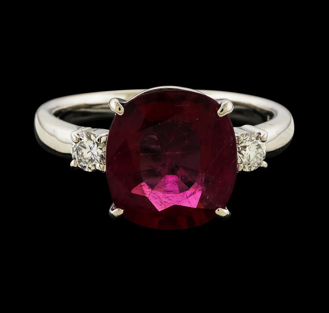 One ring featuring: Platinum containing Pink Tourmaline with a total weight of 3.56ct and Diamonds with a total weight of 0.21ct. Total Weight of Ring: 6.4 grams.