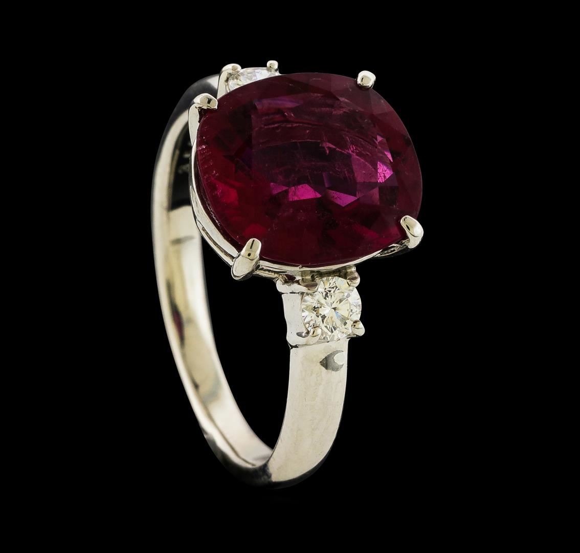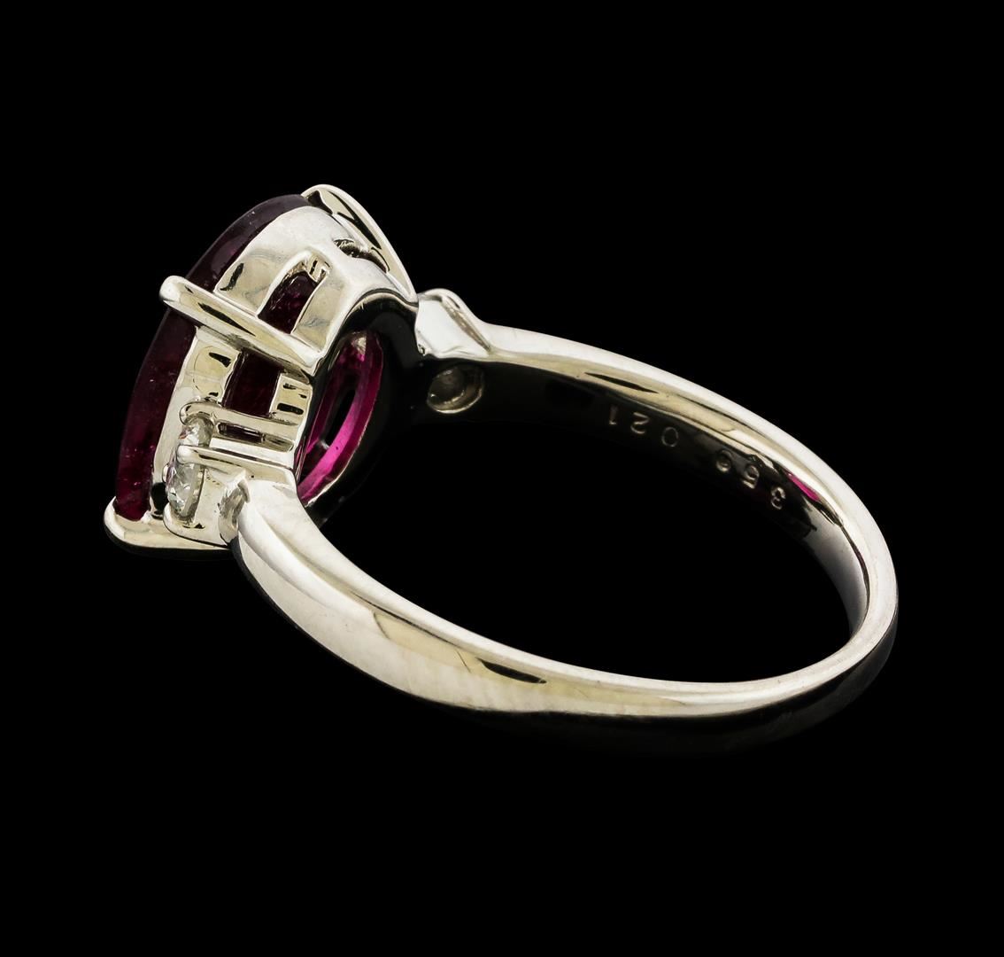 One ring featuring: Platinum containing Pink Tourmaline with a total weight of 3.56ct and Diamonds with a total weight of 0.21ct. Total Weight of Ring: 6.4 grams.