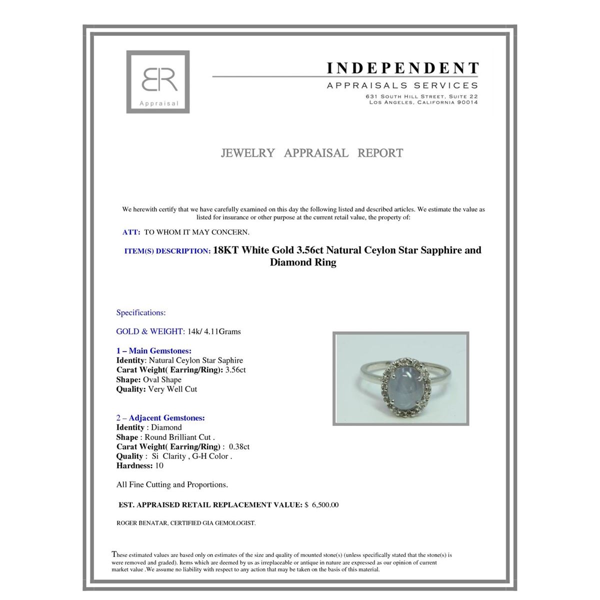 18K W/G NATURAL CEYLON STAR SAPPHIRE RING: 4.11GRAM/CEYLON STAR SAPPHIRE :3.56CT/ DIA: 0.38CT/#GVR1355