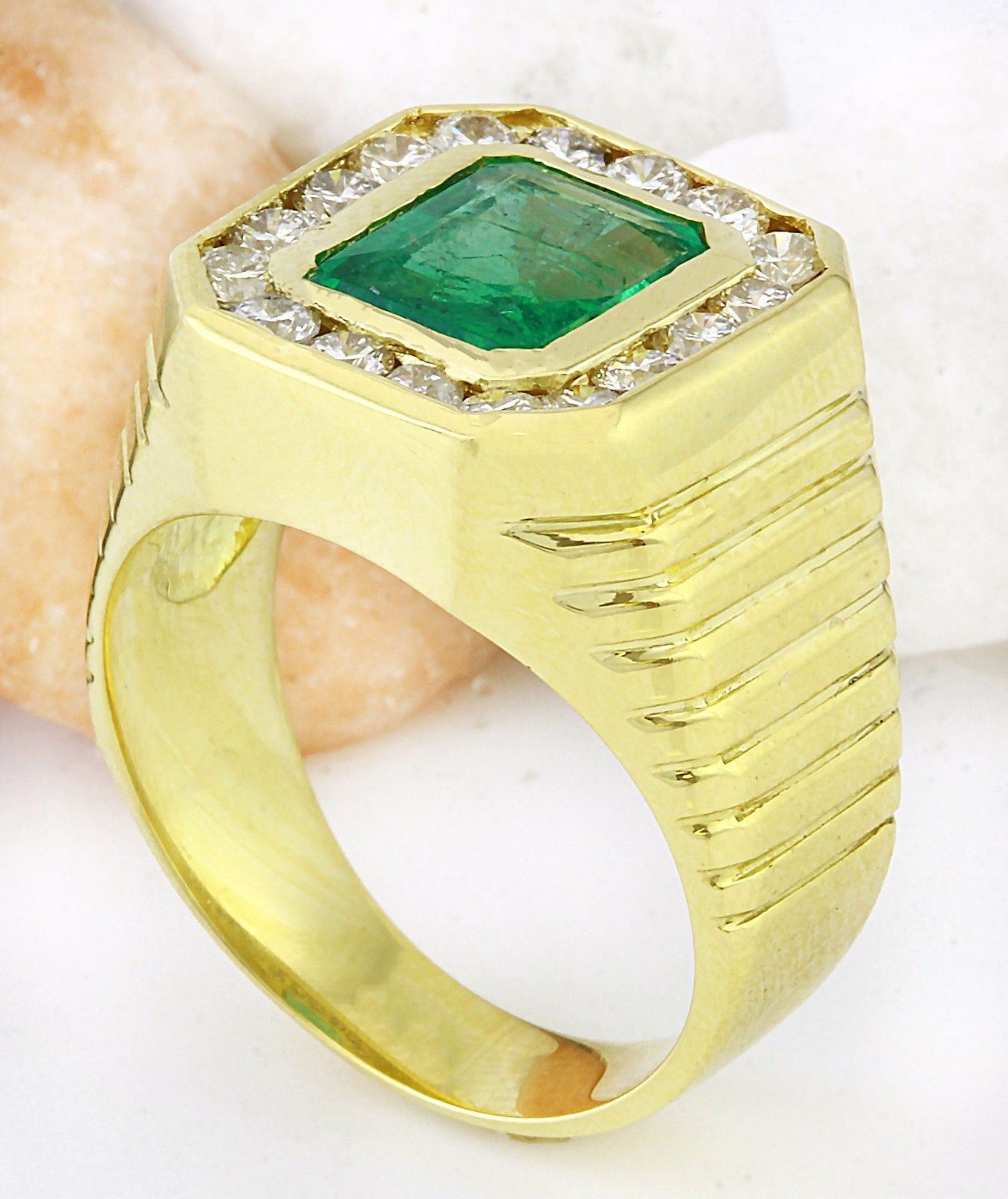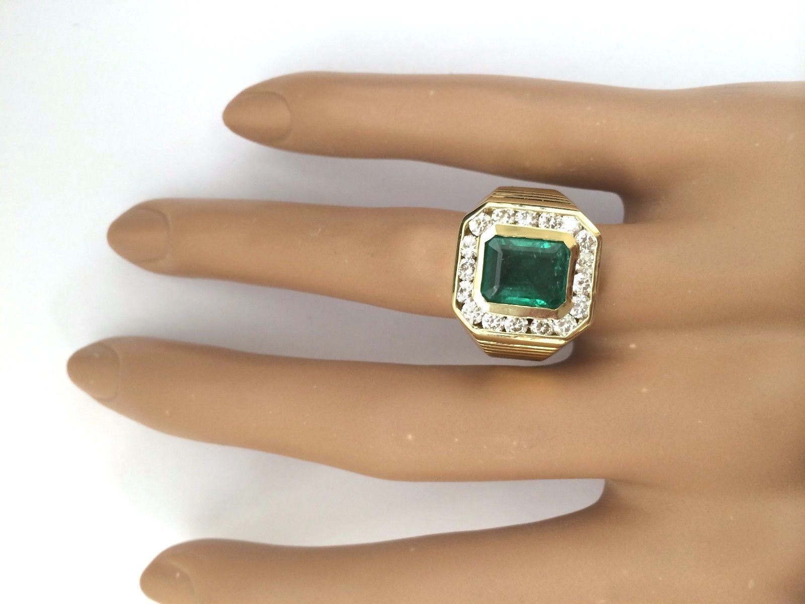 3.57 Carat Natural Emerald 18K Solid Yellow Gold Diamond Ring