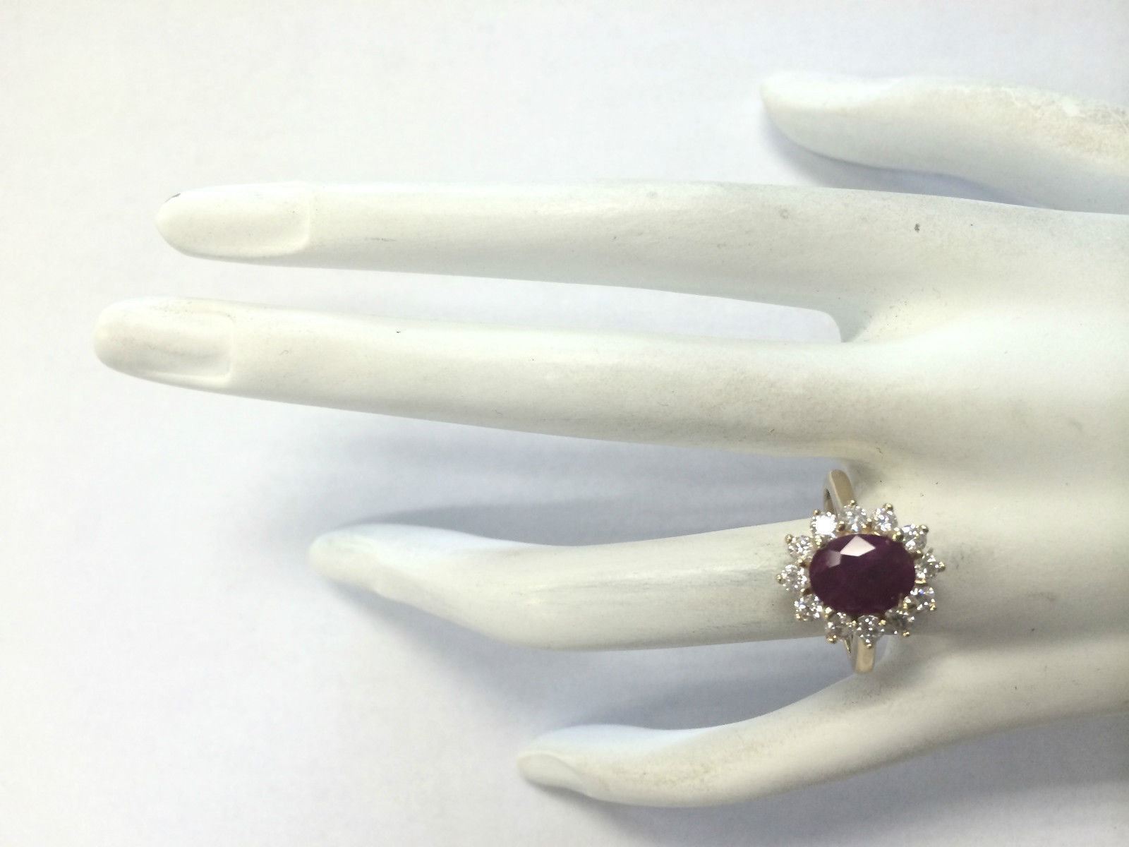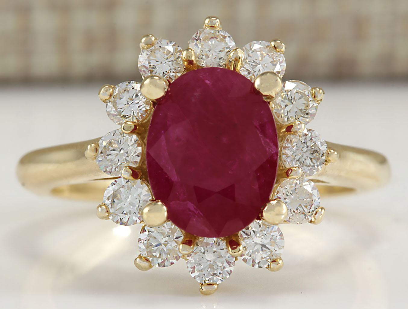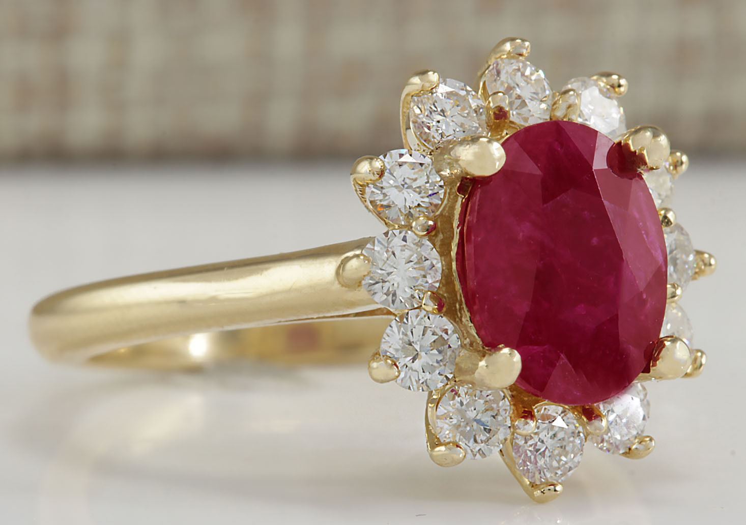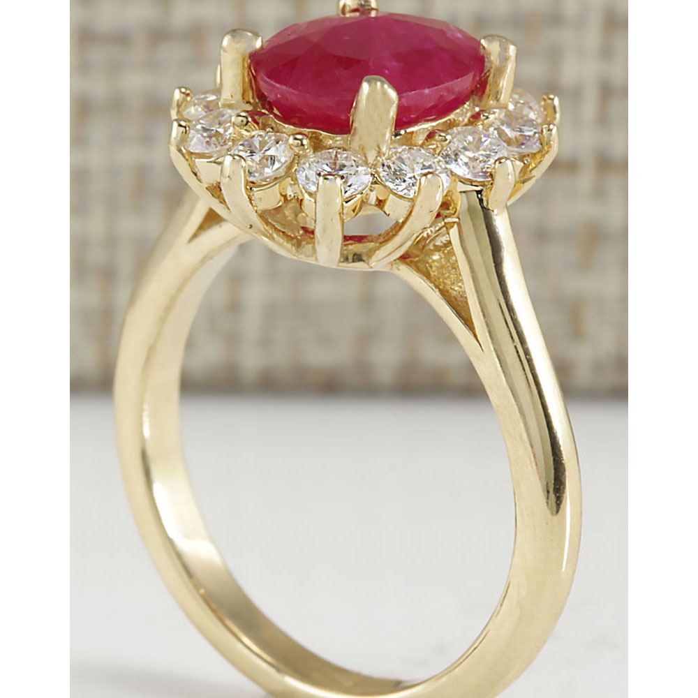 3.57 CTW Natural Ruby And Diamond Ring 18K Solid Yellow Gold