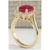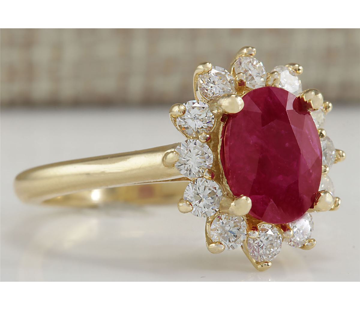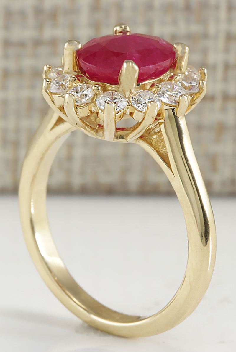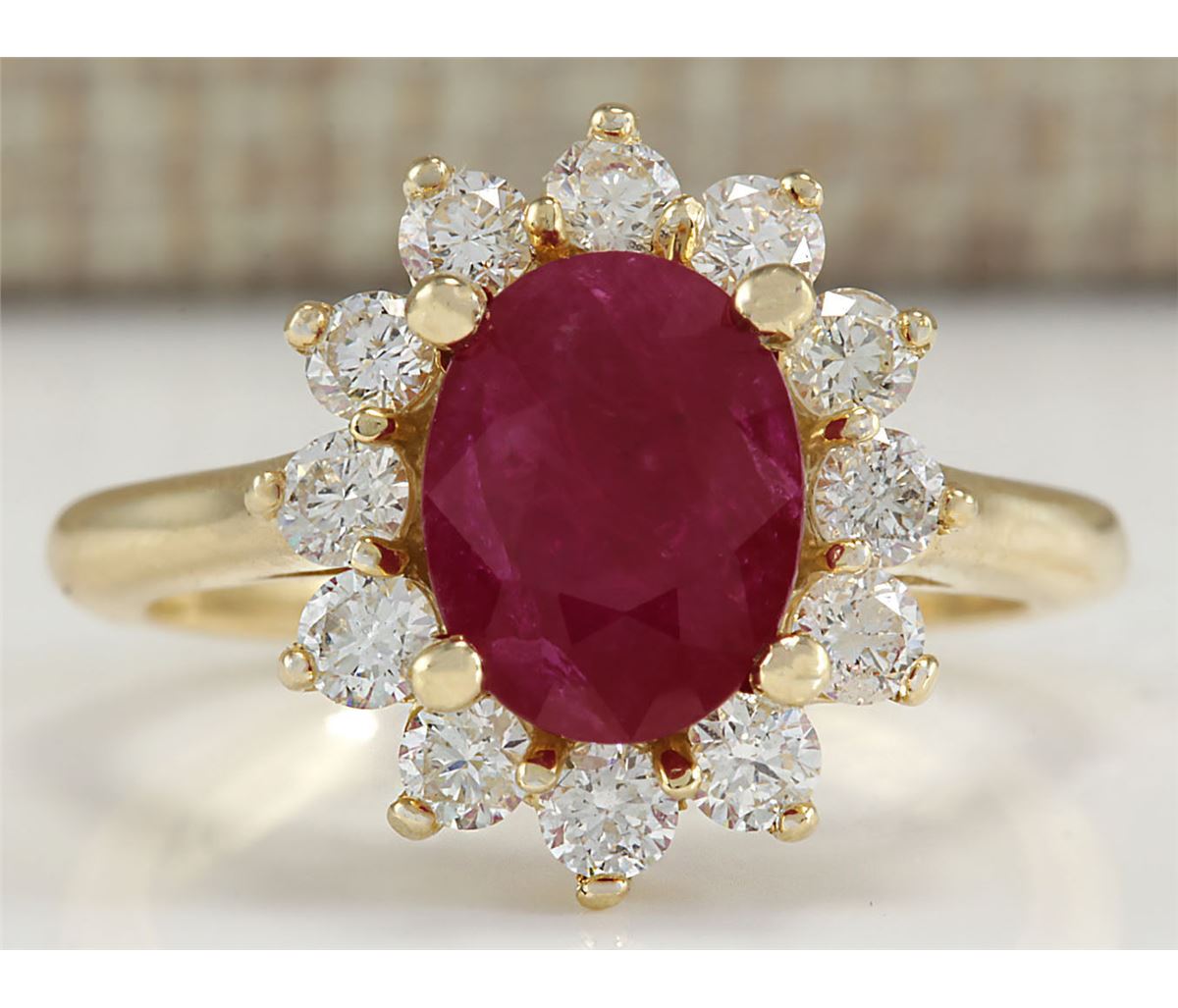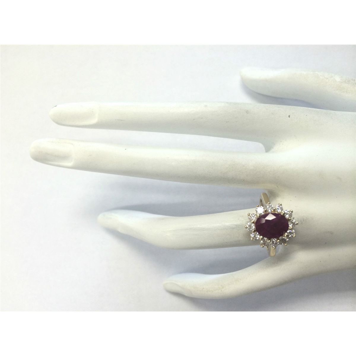 Stamped: 14K Ring Size: 6.25 Total Ring Weight: 4.2 Grams Diamond Weight: Total natural diamond weight is 1.13carat. SI1-SI2 clarity / G-H color Gemstone Weight: Total Natural Mozambique Ruby Weight is 2.44ctw (Measures: 9.05x7.68mm) (Heated only no glass or led treatment very nice hight quality stone) Face Measures: 14.97x13.34mm Main stone color: Red [SKU:702827]