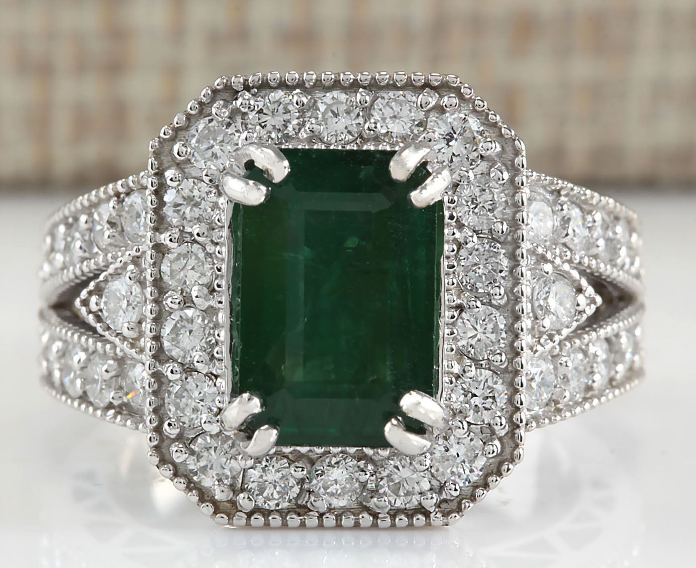 3.58 CTW Natural Emerald And Diamond Ring 14K Solid White Gold