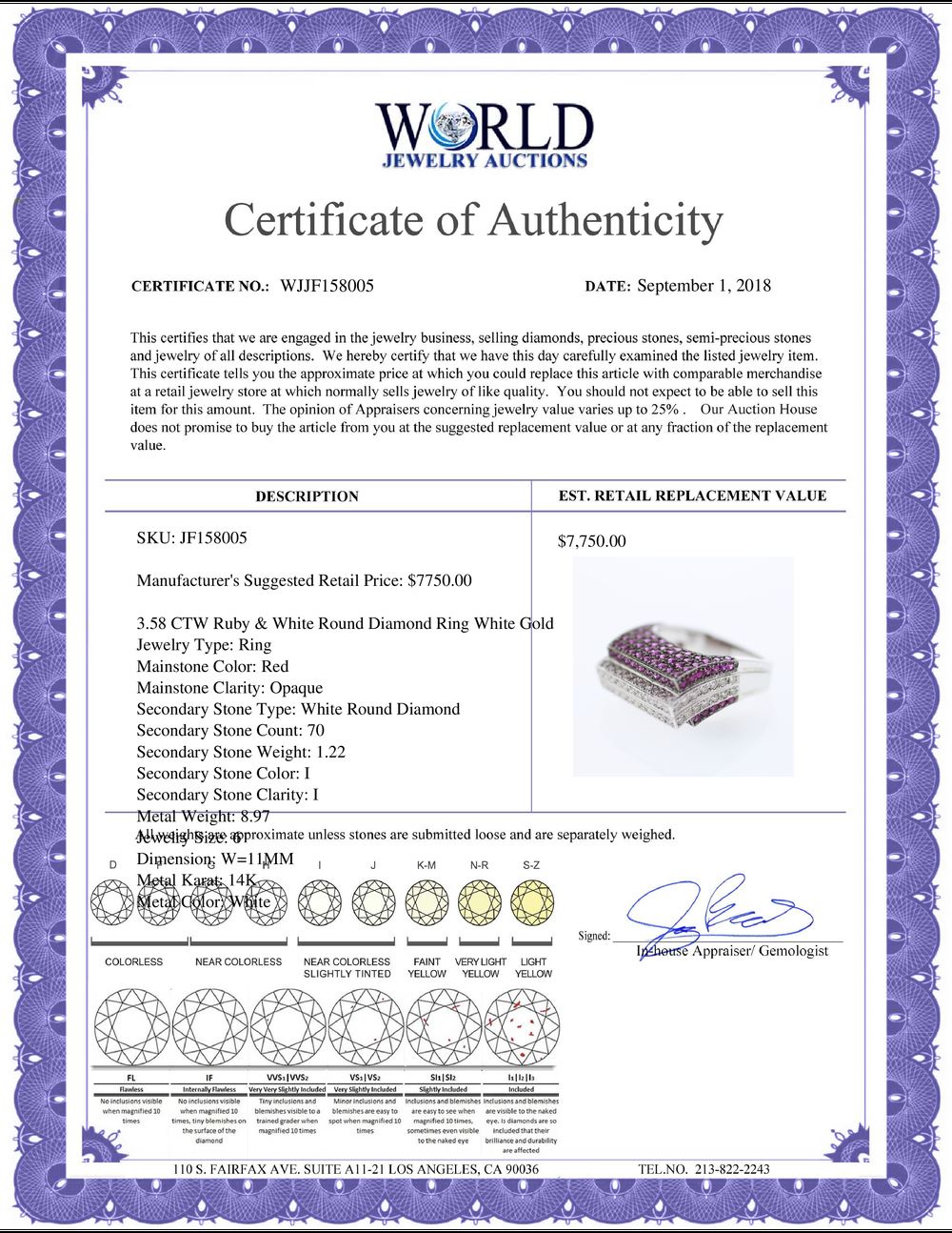 REF-101Y8X - JF158005 ---- 3.58 CTW Ruby & White Round Diamond Ring 14K White Gold