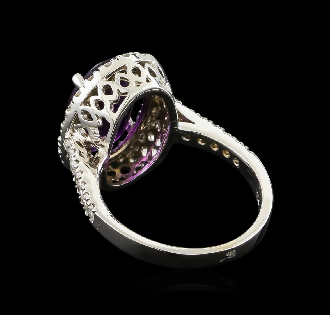 One Ring featuring: 14KT White Gold weighing 5.17 grams containing one Amethyst center stone with a total weight of 3.58ct and Diamonds with a total weight of 0.75ct.
