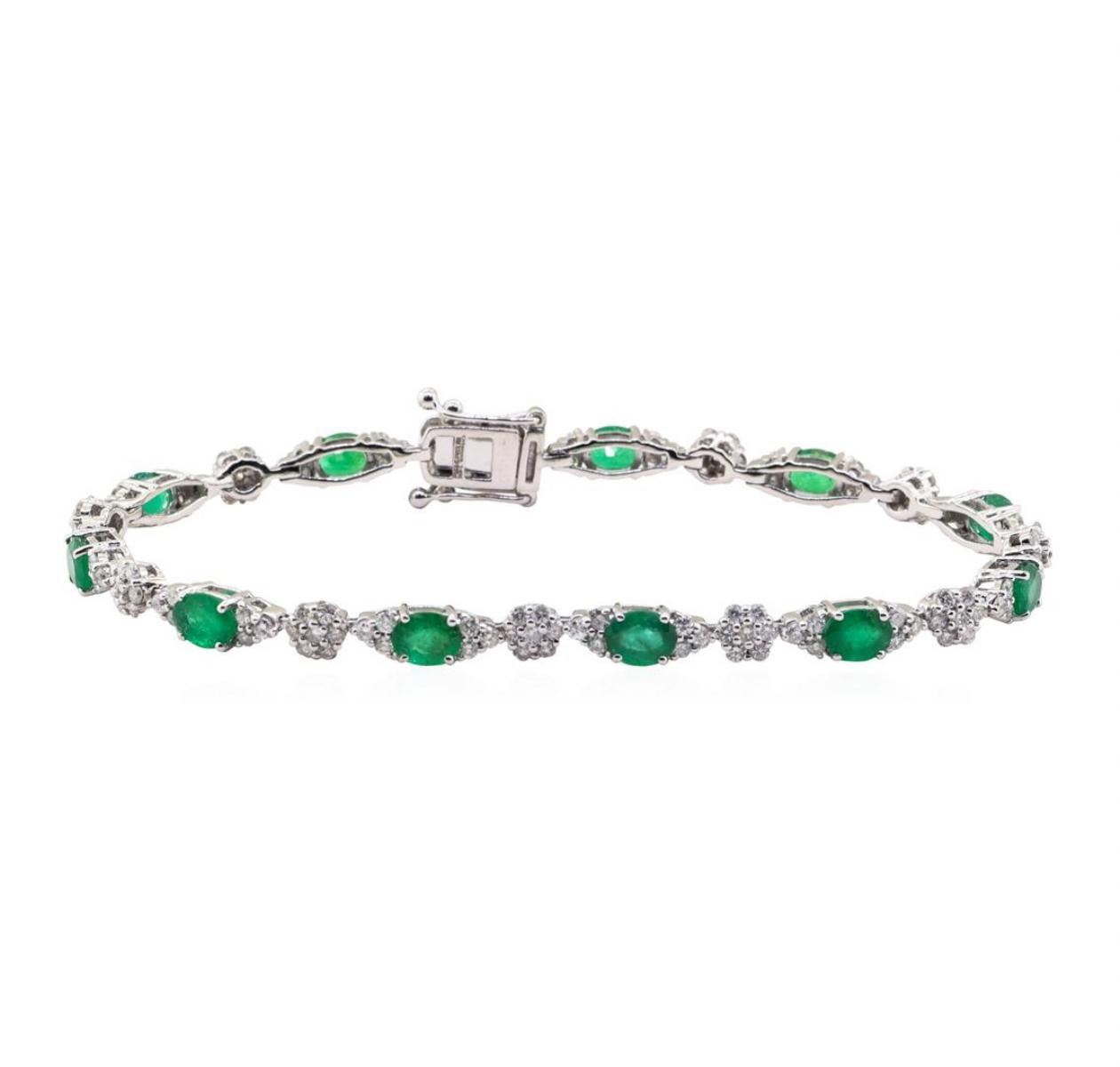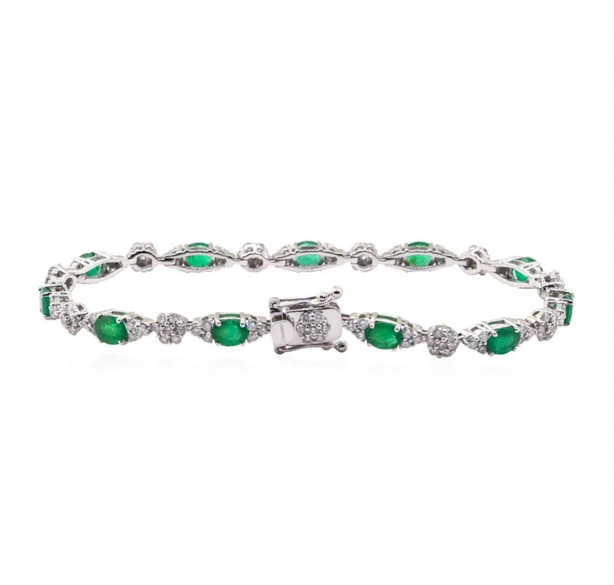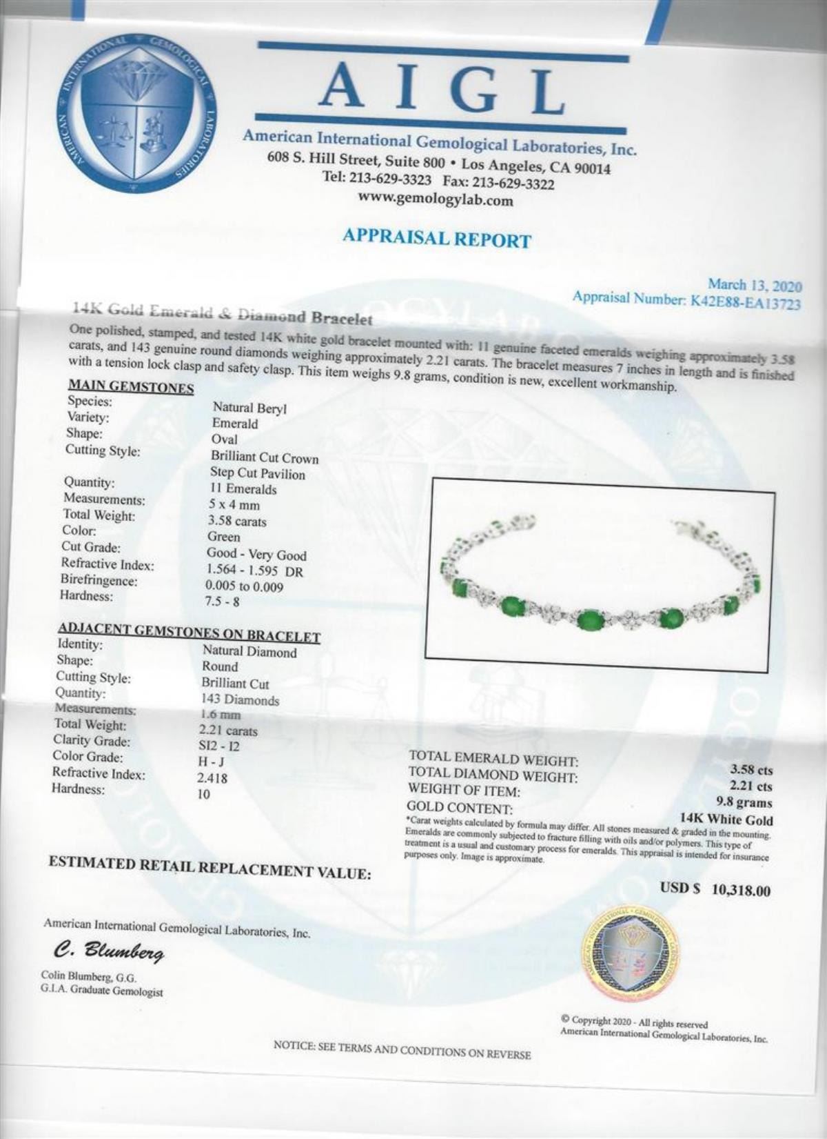 One 3.58ctw Emerald and Diamond Bracelet - 14KT White Gold. AIG certified. See Appraisal for more details. AIG Appraised.