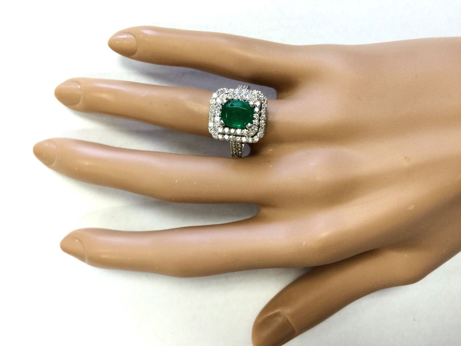 3.59 CTW Natural Emerald And Diamond Ring In 18K White Gold