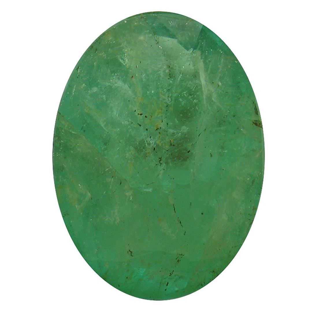 One oval mixed cut natural emerald, measuring 12.00 x 9.00 x 4.50mm, exact weight 3.50ct., clarity is heavily included, medium dark, very slightly grayish, very slightly bluish green color, (GIA vslbG 6/3), cut is good. Transmitting light somewhat diffusely, translucent, Naturally occurring internal & external characteristics are present, Indications of multiple laboratory enhancements, including high temperature heat treatment. Westfield Appraised at $1,605.00.