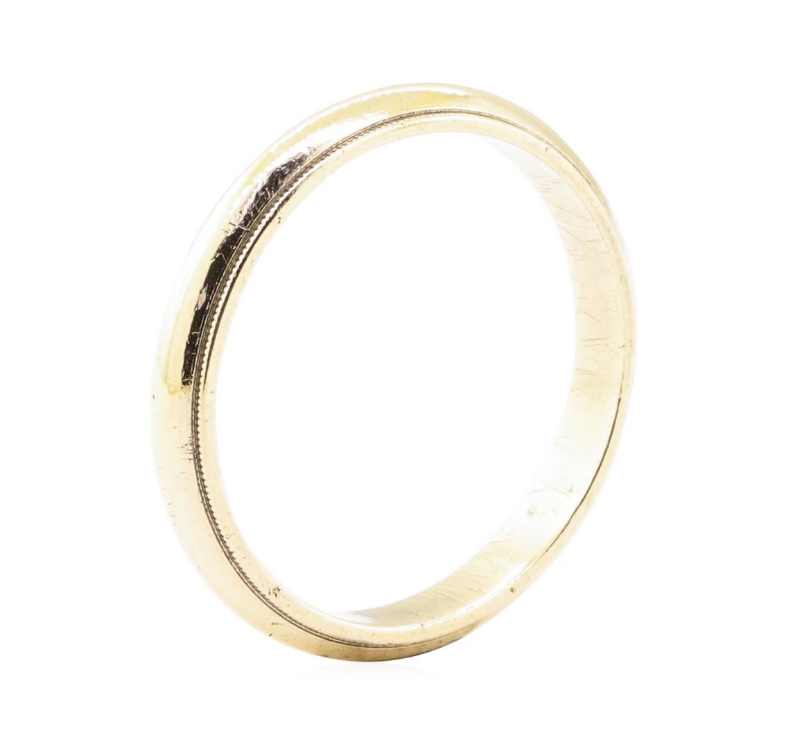 One half dome wedding ring with a milgrain edge featuring: 14KT yellow gold weighing 4.4 grams.