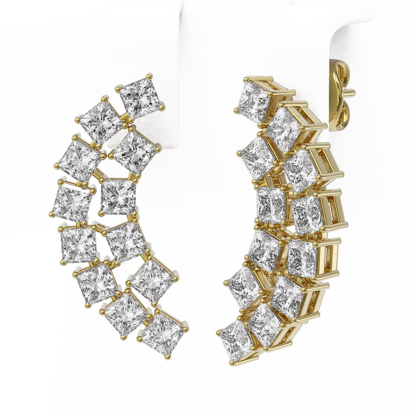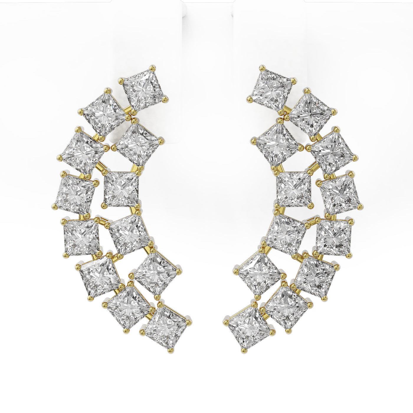 REF-431X3A - SKU: 47720 ---- 3.6 ctw Princess Cut Diamond Designer Earrings 18K Yellow Gold