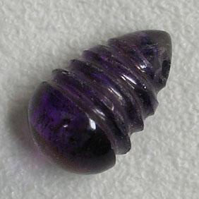 CARVED AMETHYST BRIOLETTE. IT WEIGHTS 3.60 CTS AND MEASURES 12x7 MM. TOP DRILLED