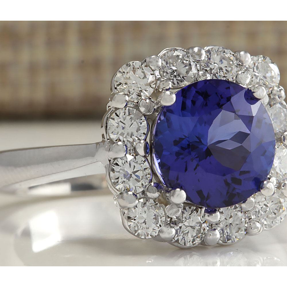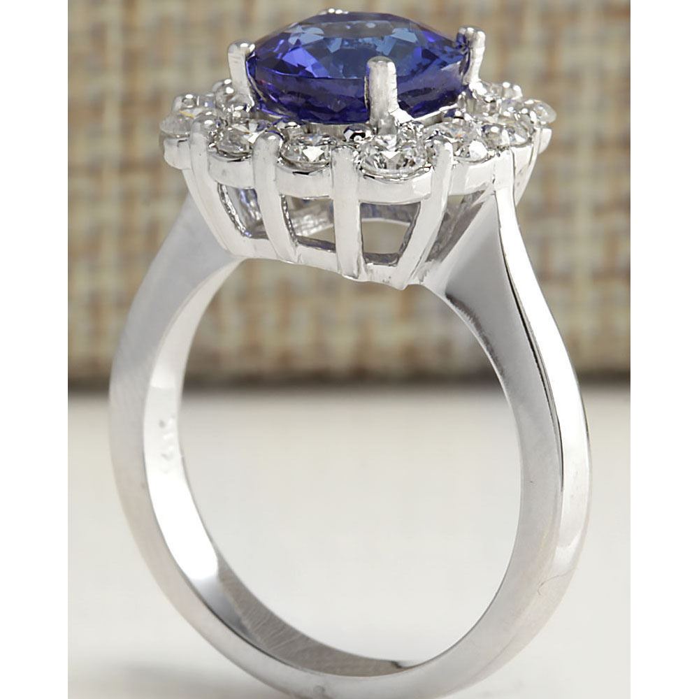 3.60 CTW Natural Blue Tanzanite And Diamond Ring 18K Solid White Gold