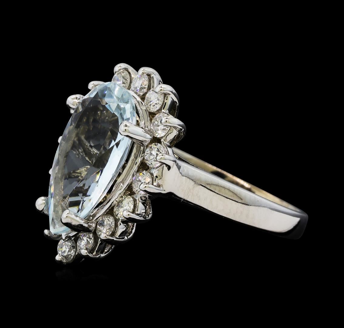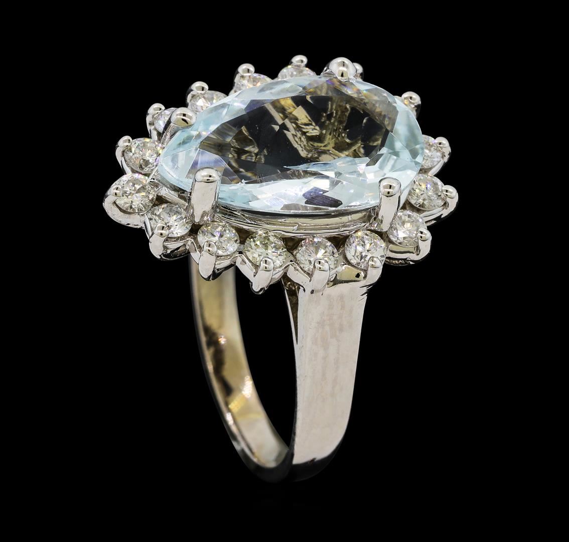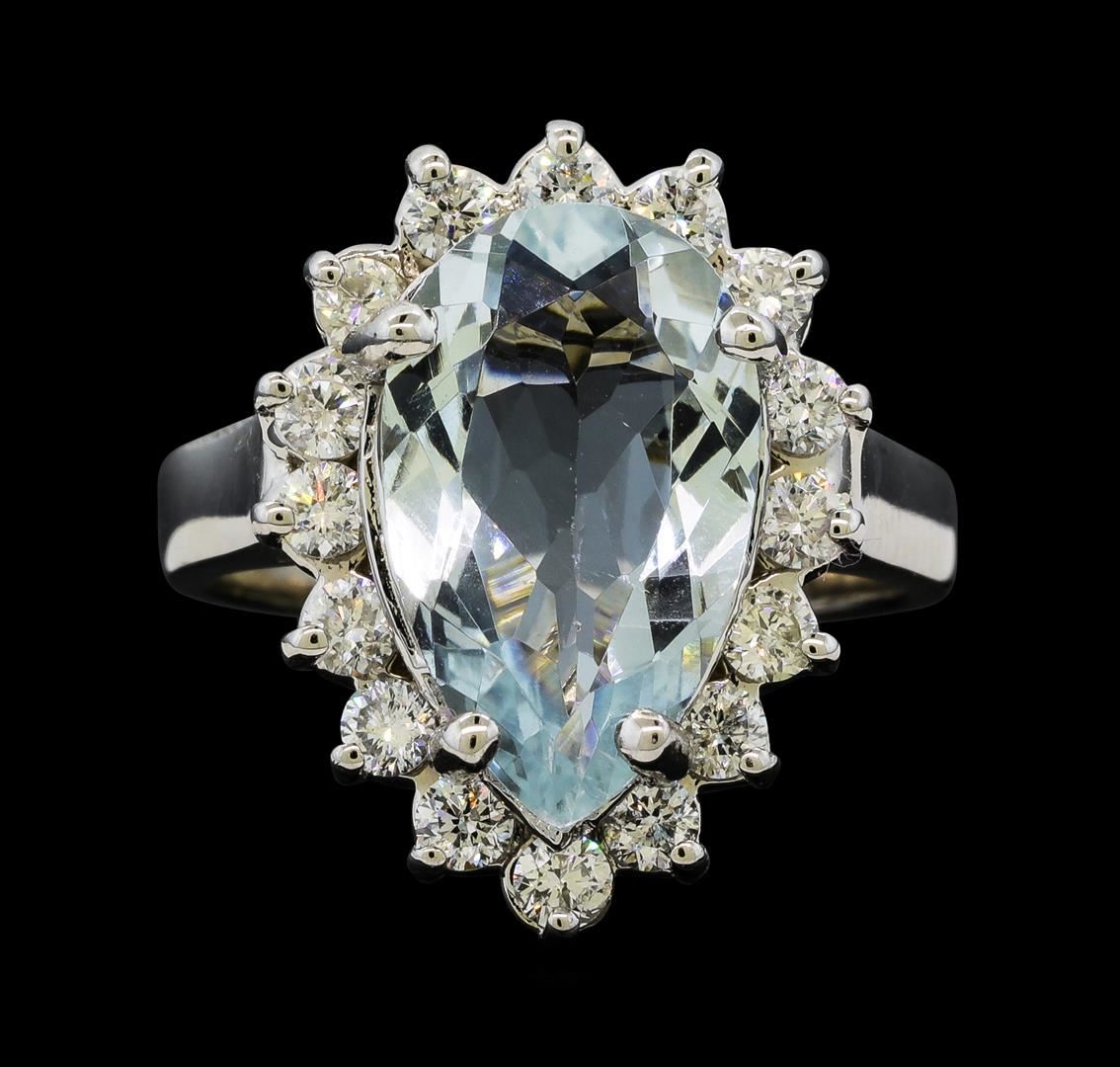 One Aquamarine and Diamond Ring including: 14KT White Gold weighing a total of 6.40 grams, Aquamarine weighing a total of 3.60ct, and 16 Diamonds weighing a total of 0858ctw.
