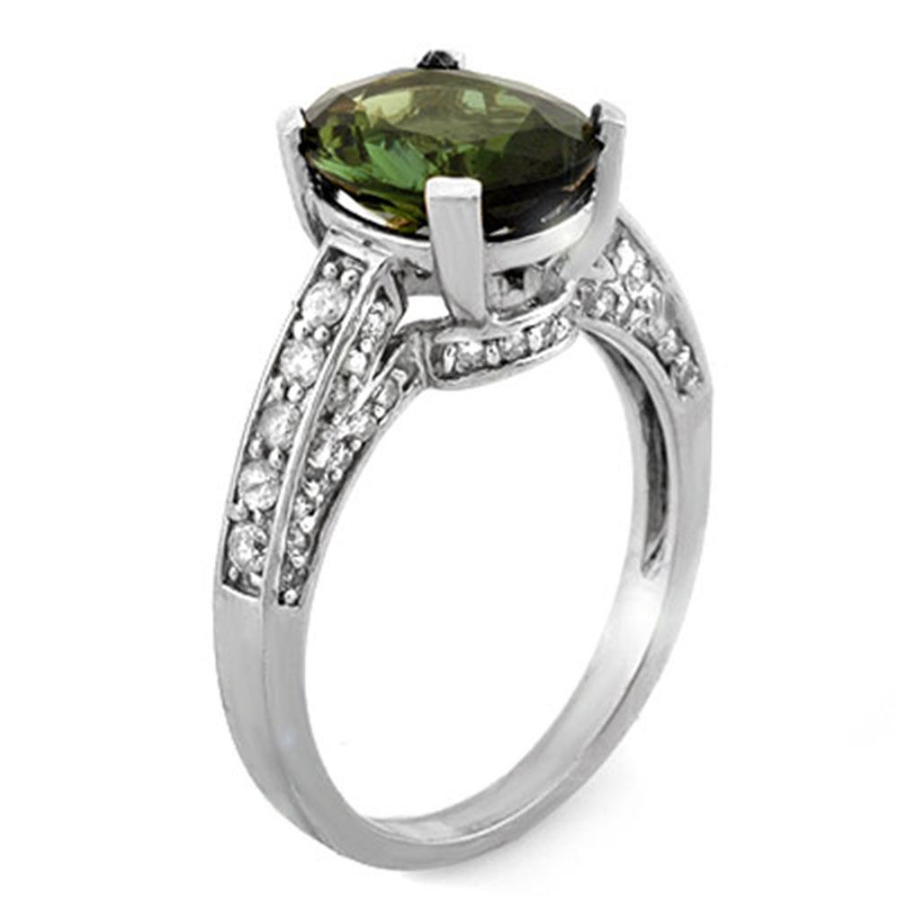 REF-97N3F - SKU: 10409 ---- 3.60 ctw Green Tourmaline & Diamond Ring 14k White Gold