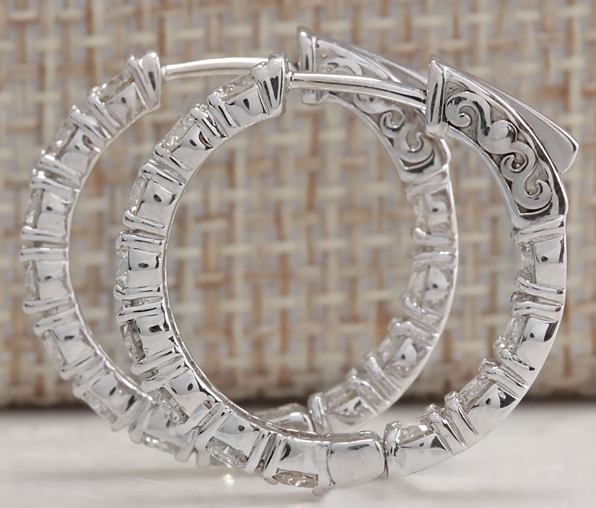 3.60CTW Natural Diamond Hoop Earrings 18K Solid White Gold