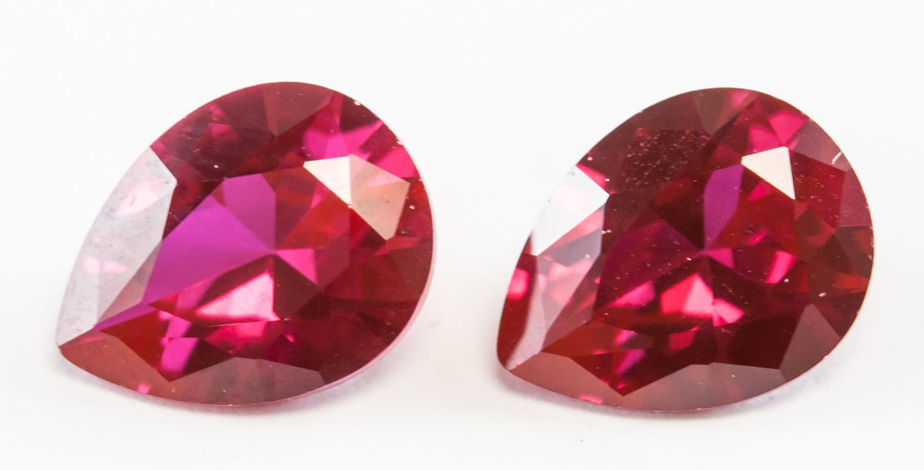 Two (2) 3.60 ct (total) pear cut pinkish red natural rubies. Origin: Mozambique. Accompanied with GGL certificate. 8.88 x 6.82 x 3.92 mm.