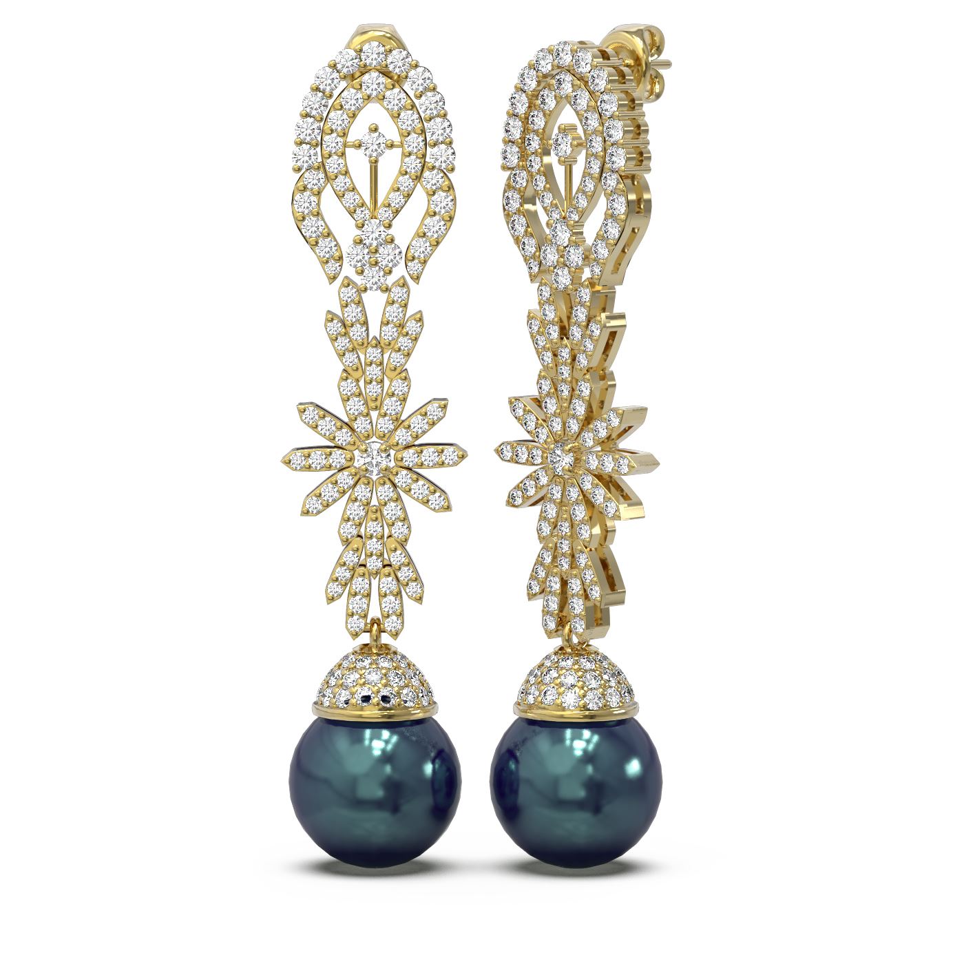 SKU: 54991 ---- 3.61 ctw Diamond & Pearl Earrings 18K Yellow Gold
